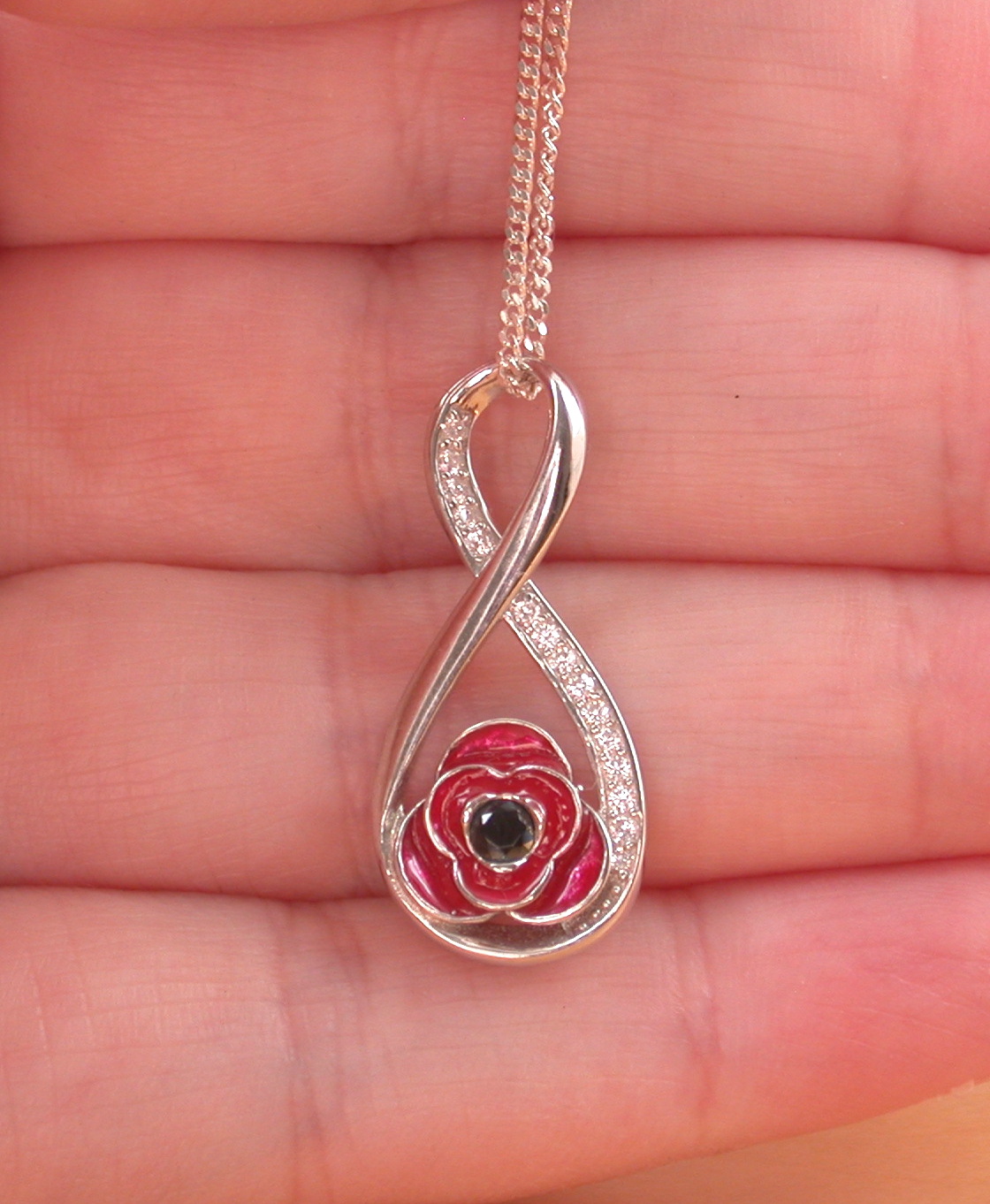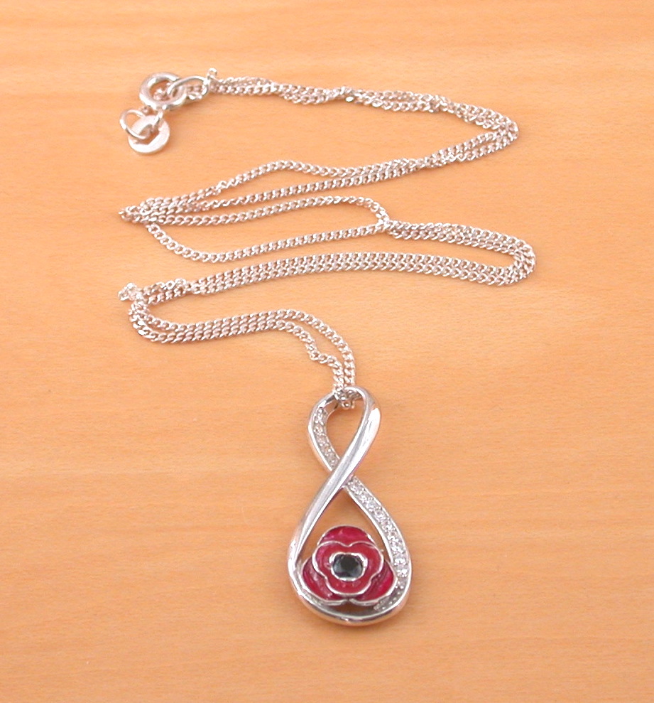 BOXED GIFT/Sterling Silver Infinity Knot Poppy Pendant & Chain/Poppy Necklace/Poppy Jewellery/Poppy Jewelry/Remembrance Poppy/UK