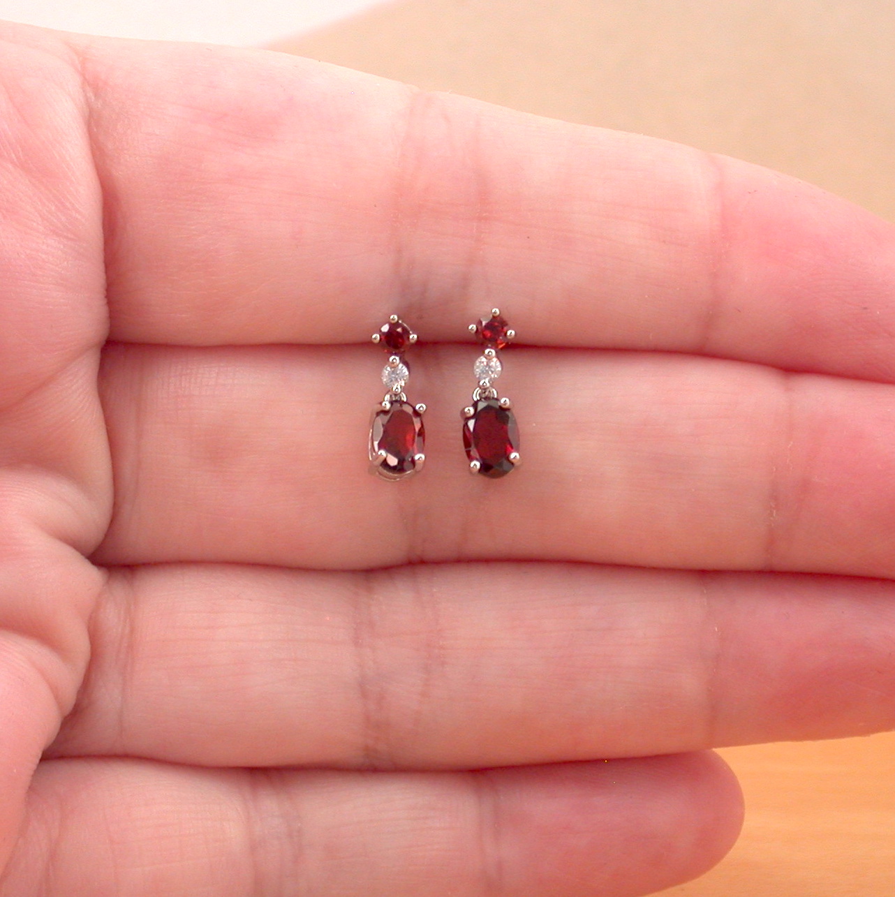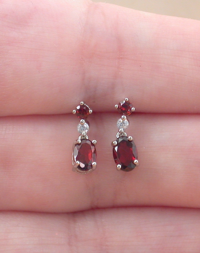 Sterling Silver Garnet & Cz Gemstone Stud Earrings/Garnet Earrings,Garnet Drop Earrings/Garnet Stud Earrings/Garnet Jewellery/Garnet Jewelry