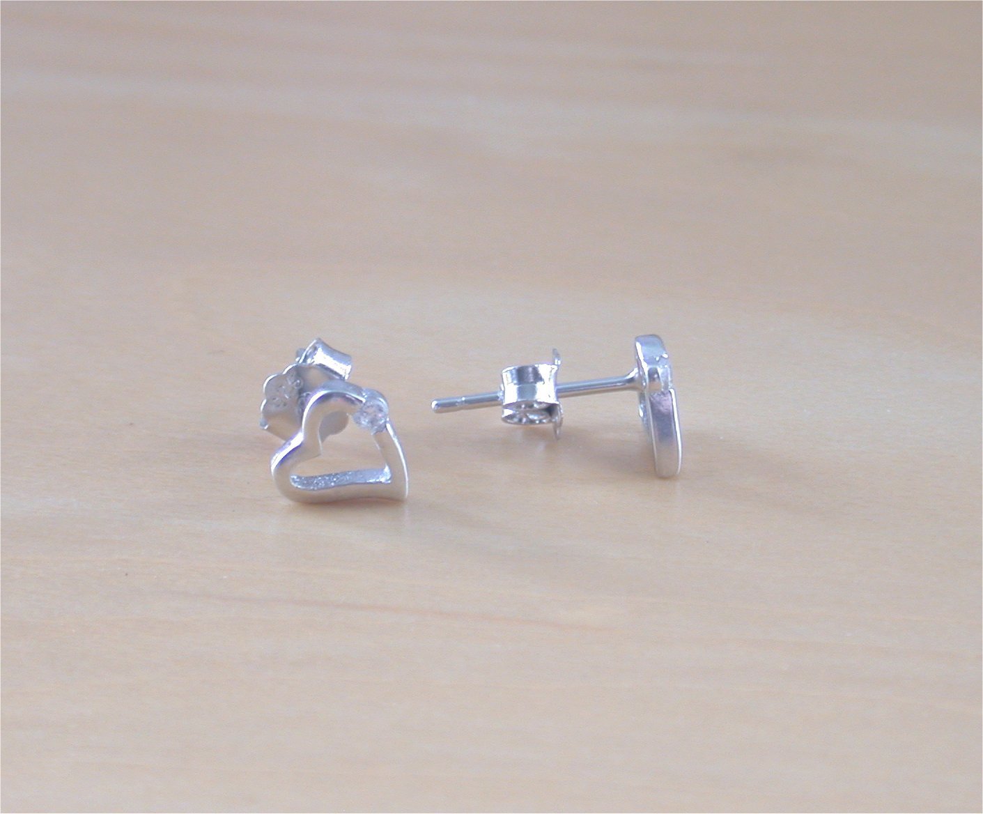 Very pretty little heart stud earrings with cz crystal detail. These earrings measure 6mm width x 7mm length. Both earrings are stamped 925.