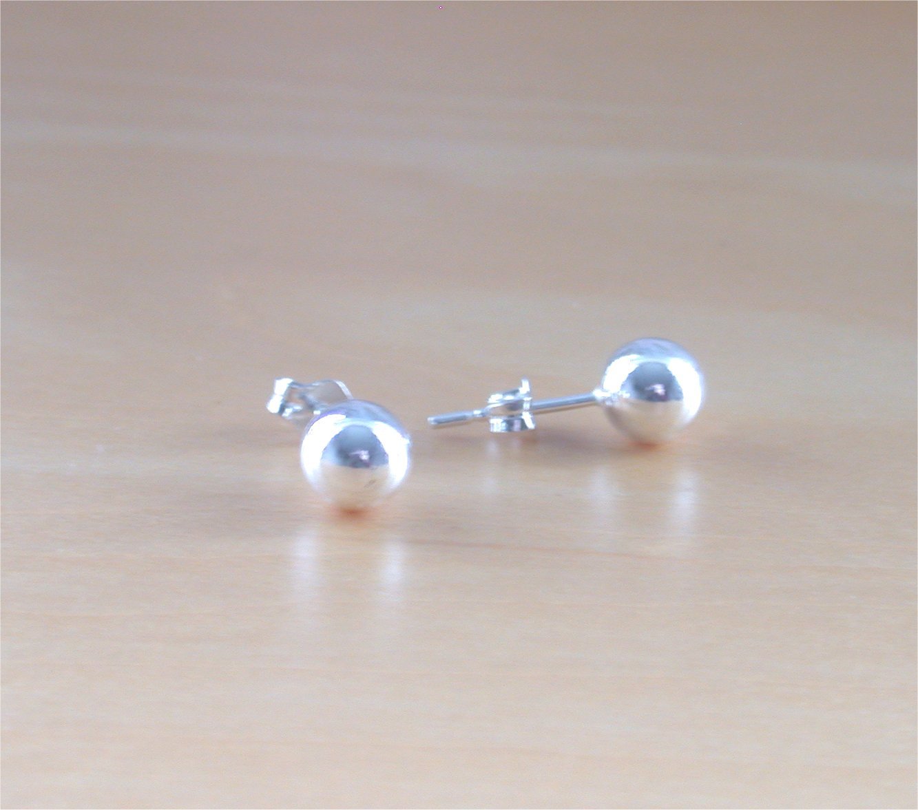 Sterling silver, ball stud earrings with polished finish. These earrings measure 6mm and are stamped 925.