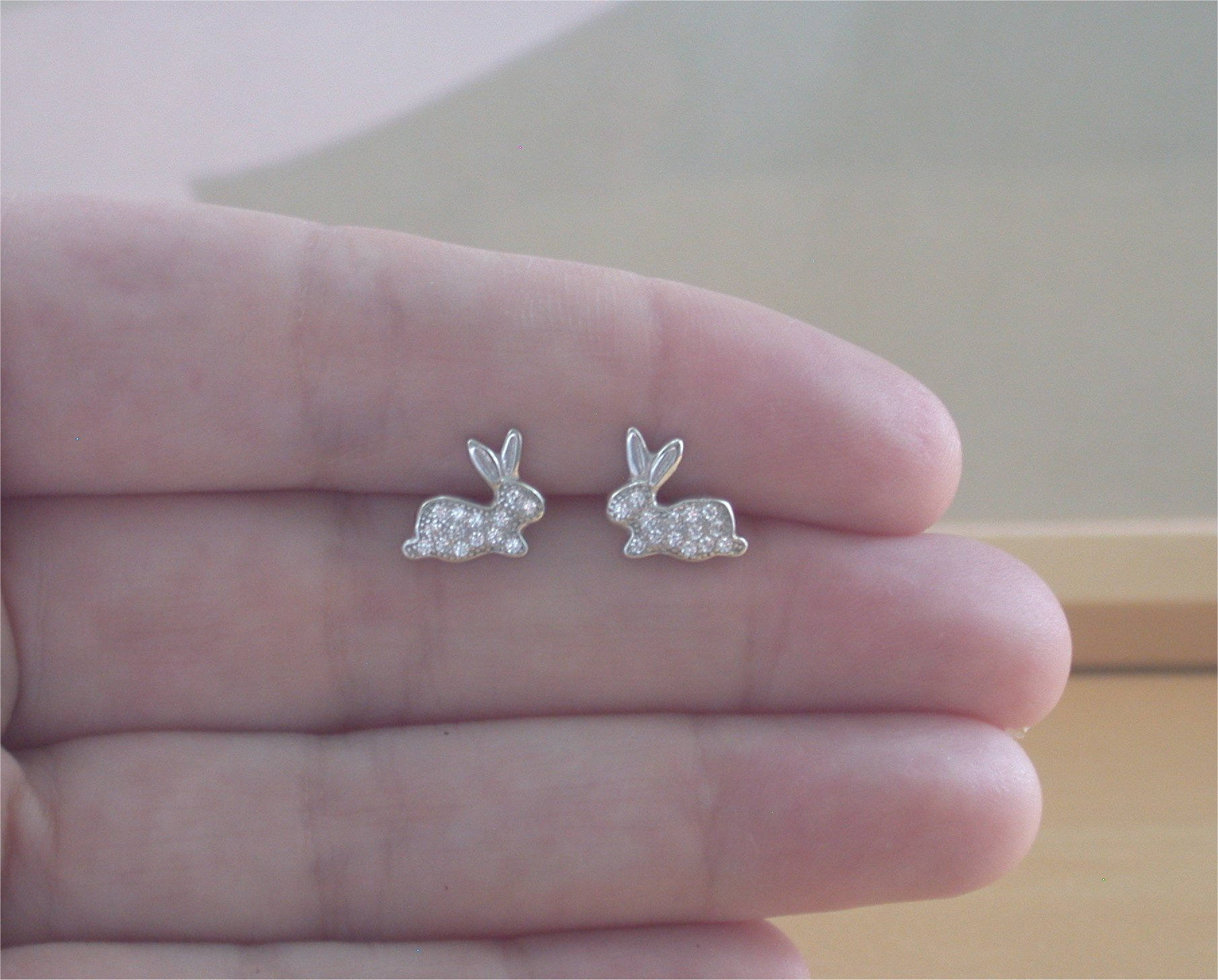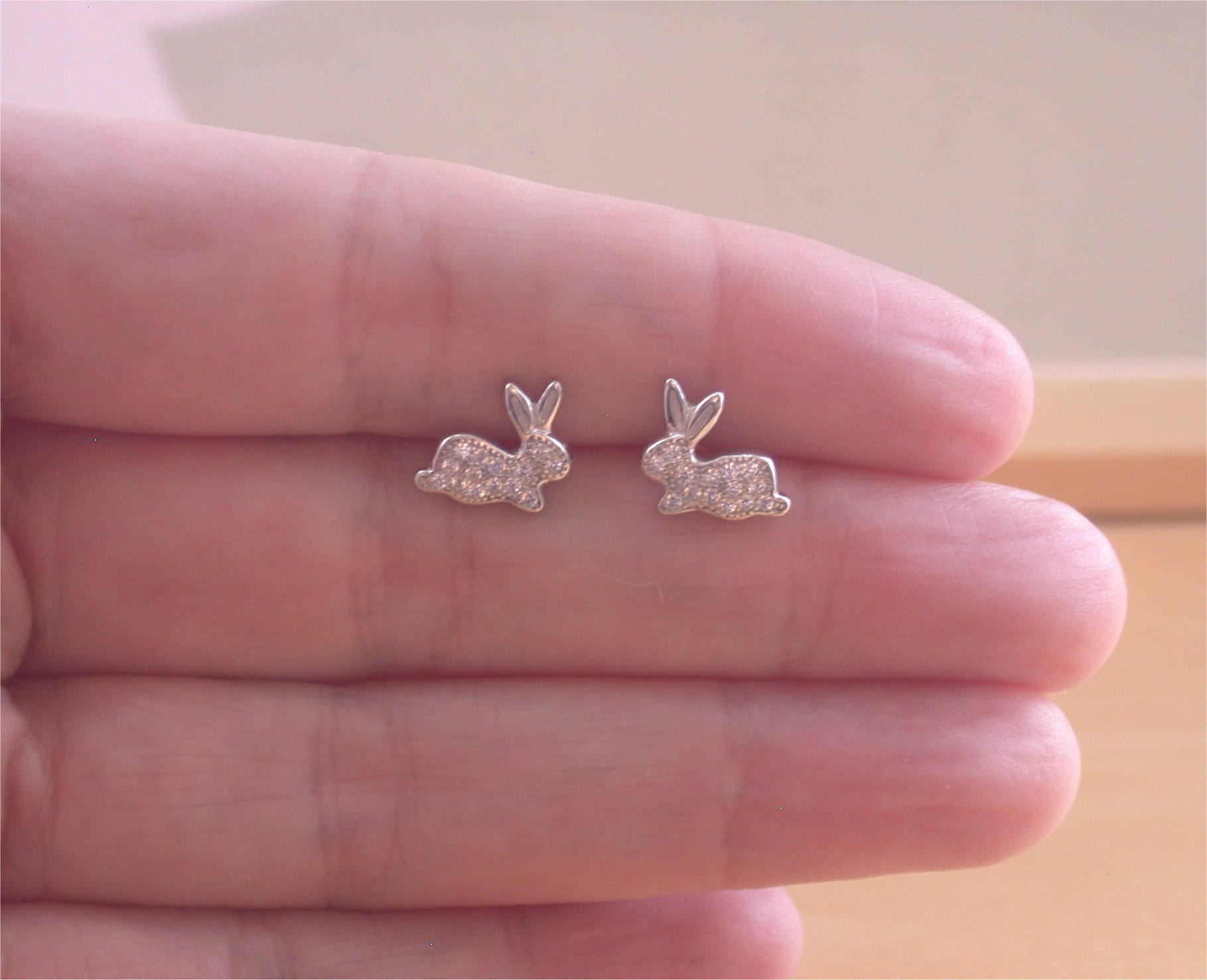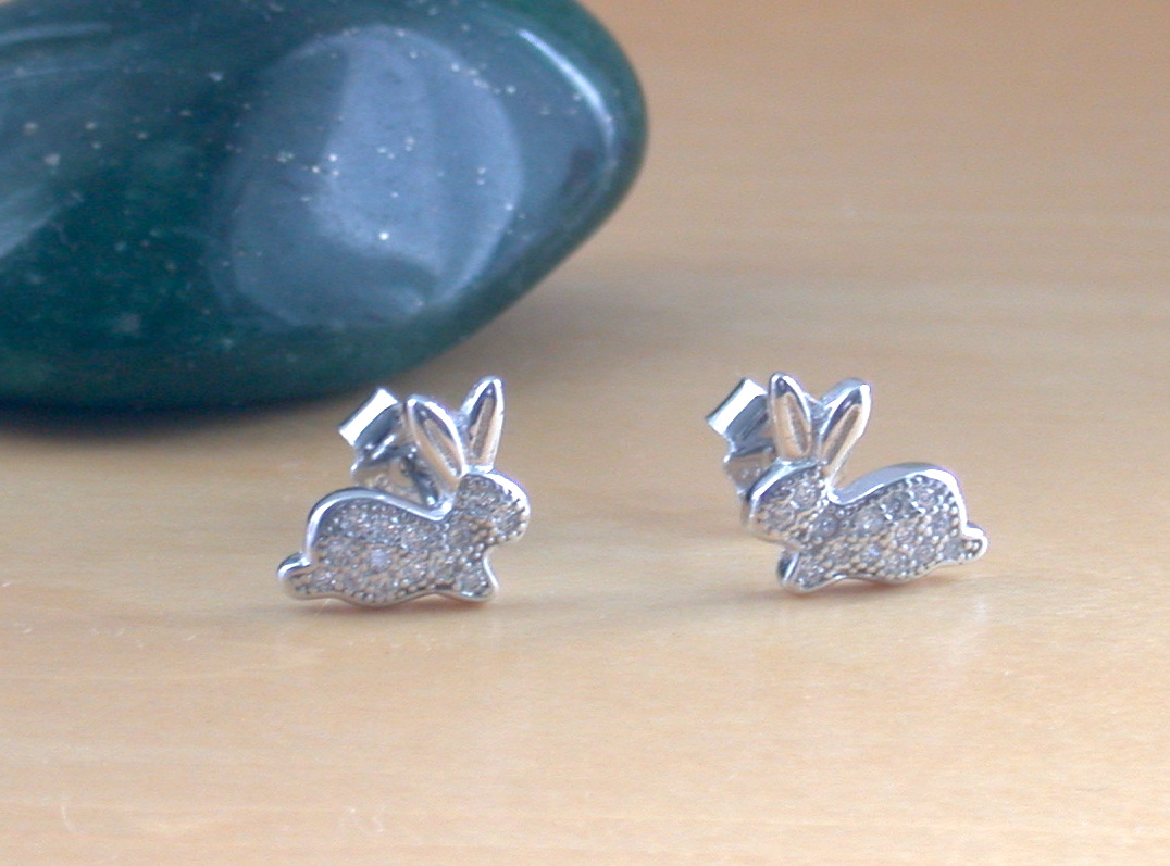 925 Crystal Zirconia Rabbit Earrings/Cz Rabbit Stud Earrings/Rabbit Jewellery/Rabbit Jewelry/Cz Earrings/Bunny Rabbit Studs/Crystal Bunny