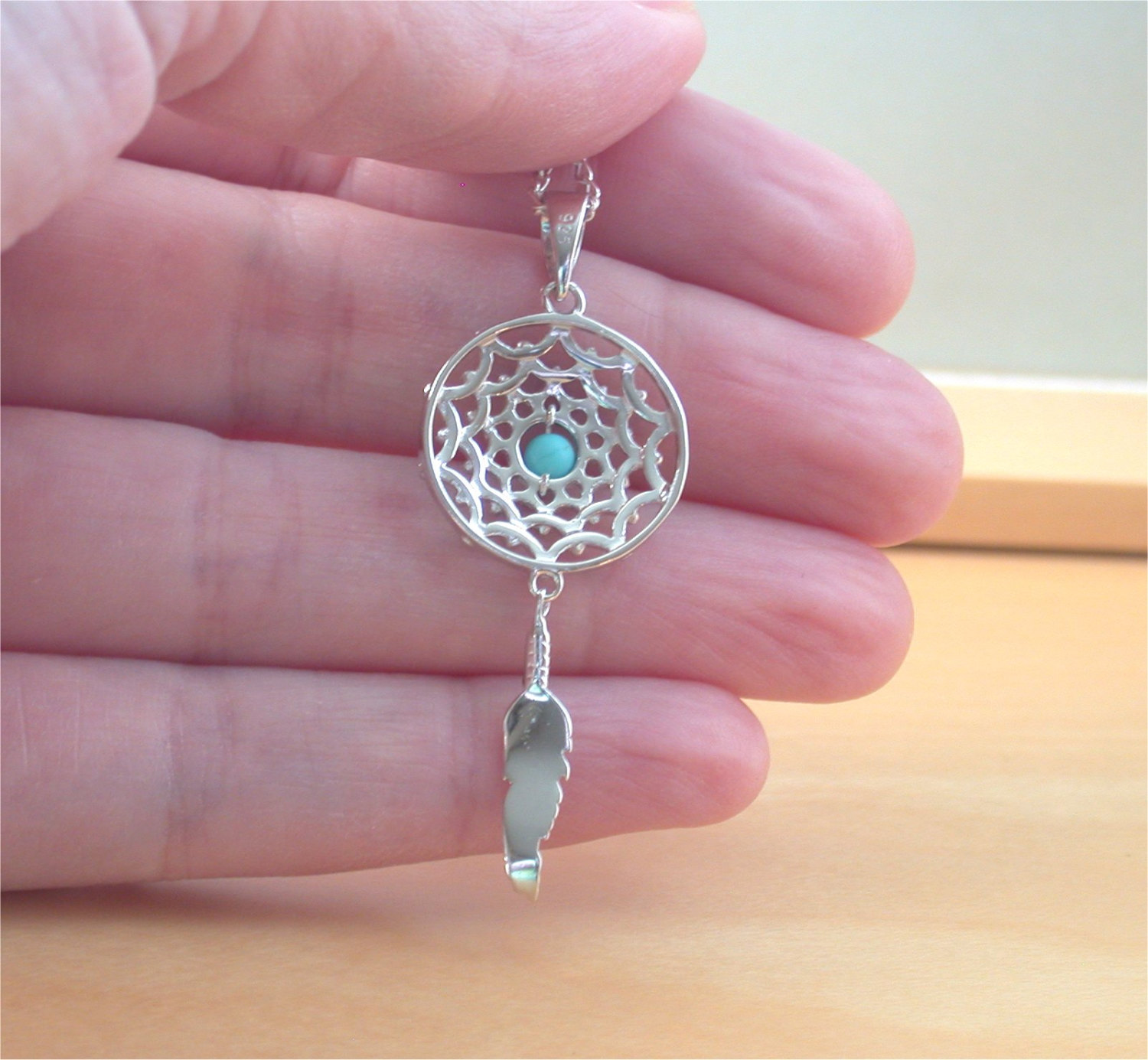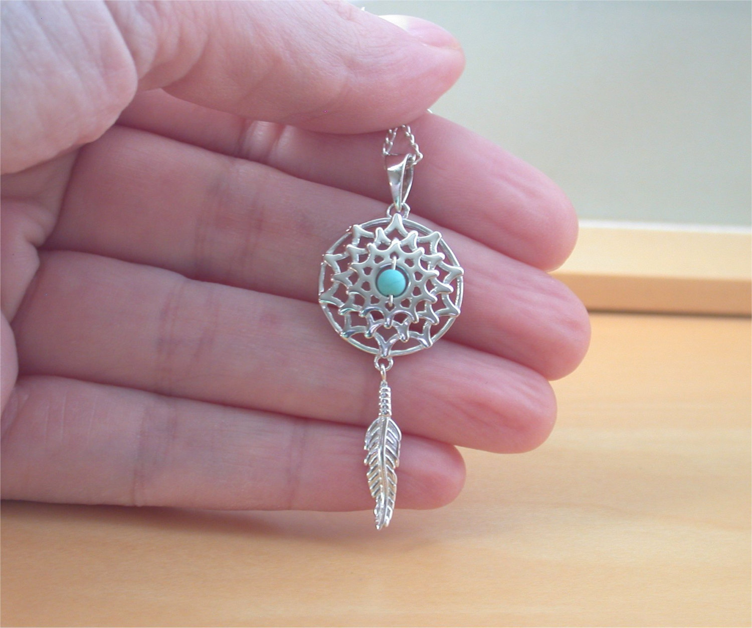 925 Dreamcatcher Pendant & 18" Sterling Silver Chain/Dreamcatcher Necklace/Dreamcatcher Jewelry/Dreamcatcher Jewellery/Turquoise Pendant