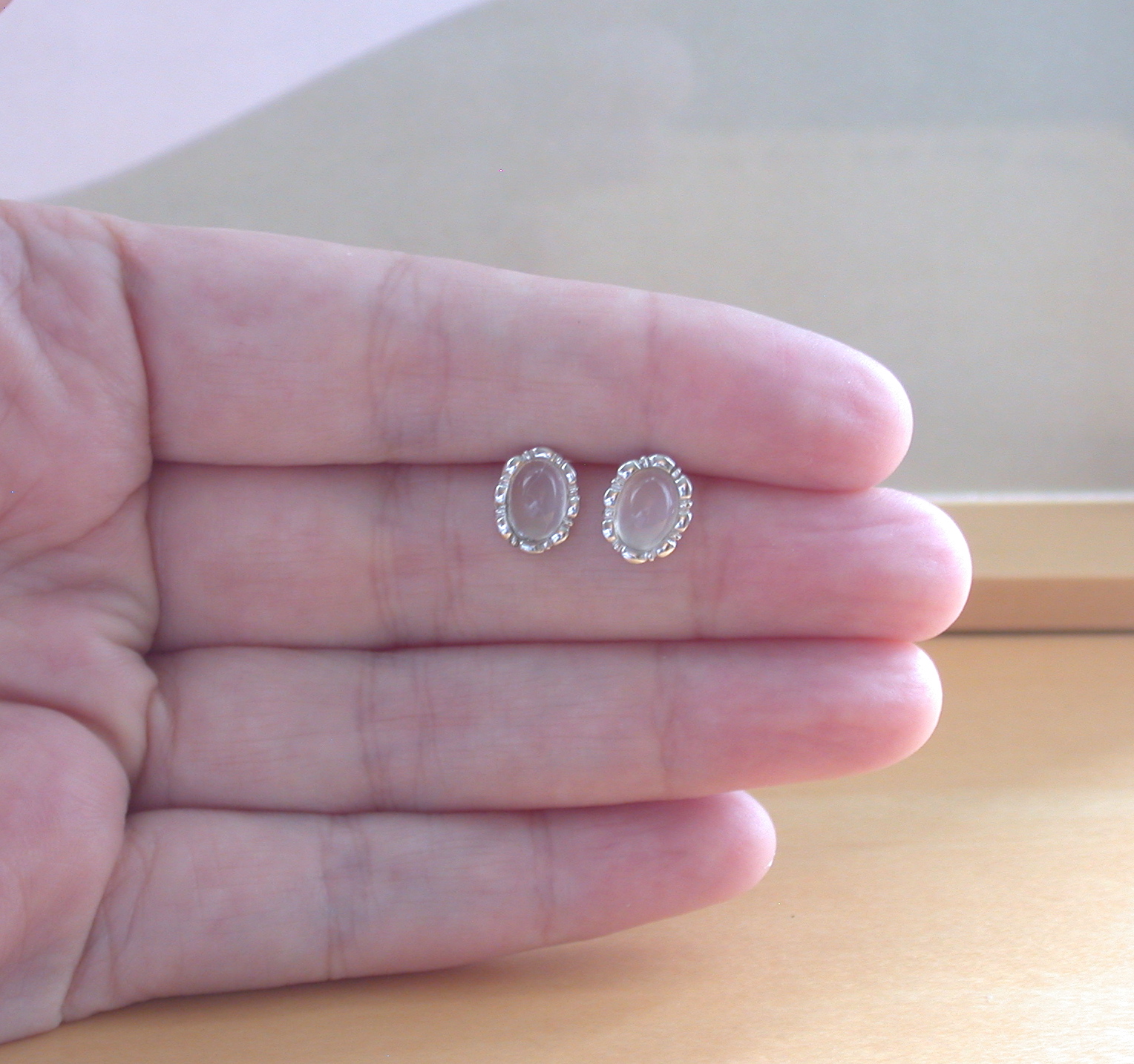 Sterling silver oval moonstone stud earrings. These earrings measure 10mm height x 7mm width. stamped 925.