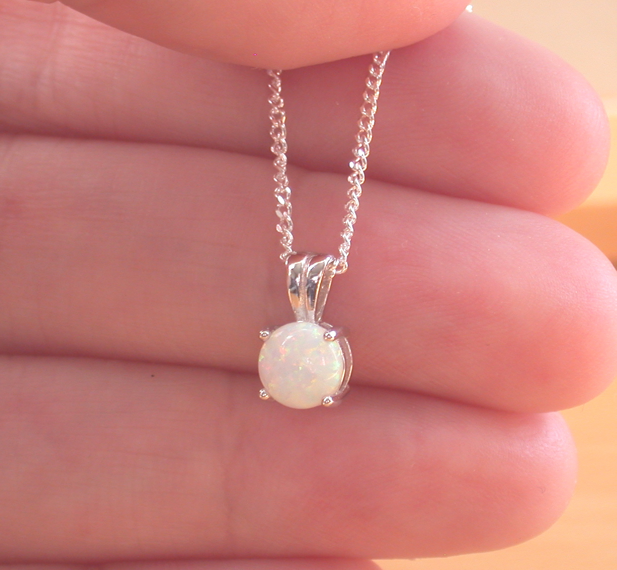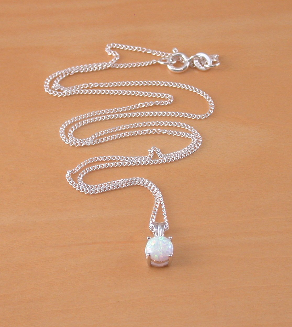 Sterling Silver White Opal Solitaire Pendant & Chain/Silver Opal Necklace UK/Opal Jewellery/Opal Jewelry/October Birthstone