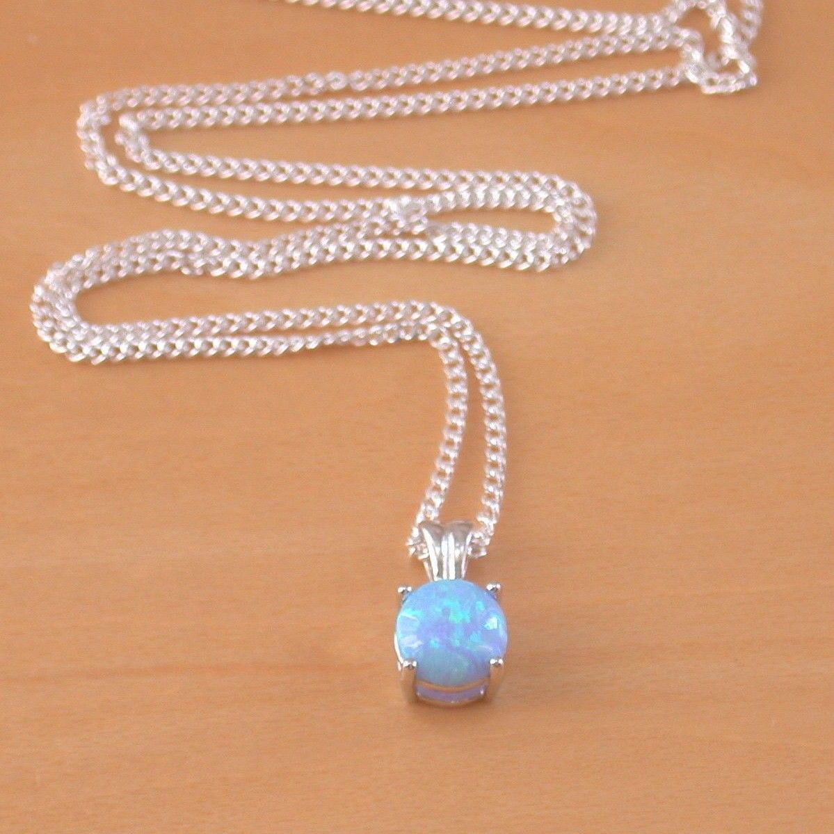 Sterling Silver Blue Opal Solitaire Pendant & chain/Silver Blue Opal Necklace UK/Opal Jewellery/Opal Jewelry/October Birthstone/Opal Gift