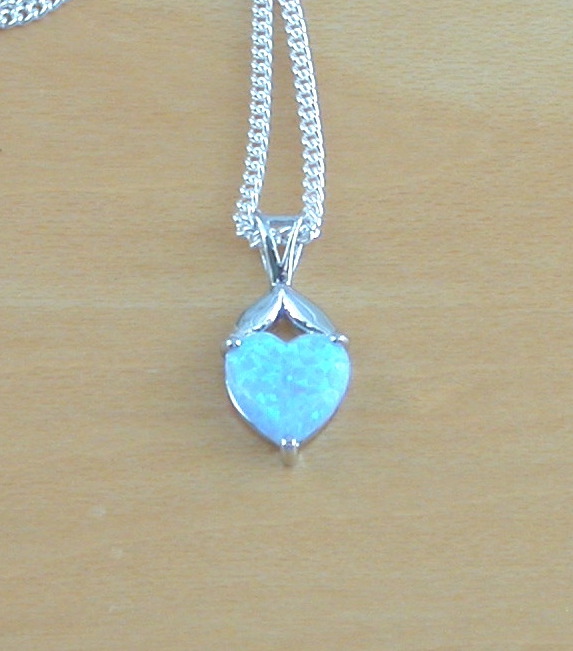 Sterling silver blue opal heart gemstone pendant with an 18 inch sterling silver curb chain (16 inch, 20 inch and 22 inch chains now available, please leave message through checkout). The pendant measures 15mm height x 7mm width. The heart gemstone measures 7mm height x 7mm width.