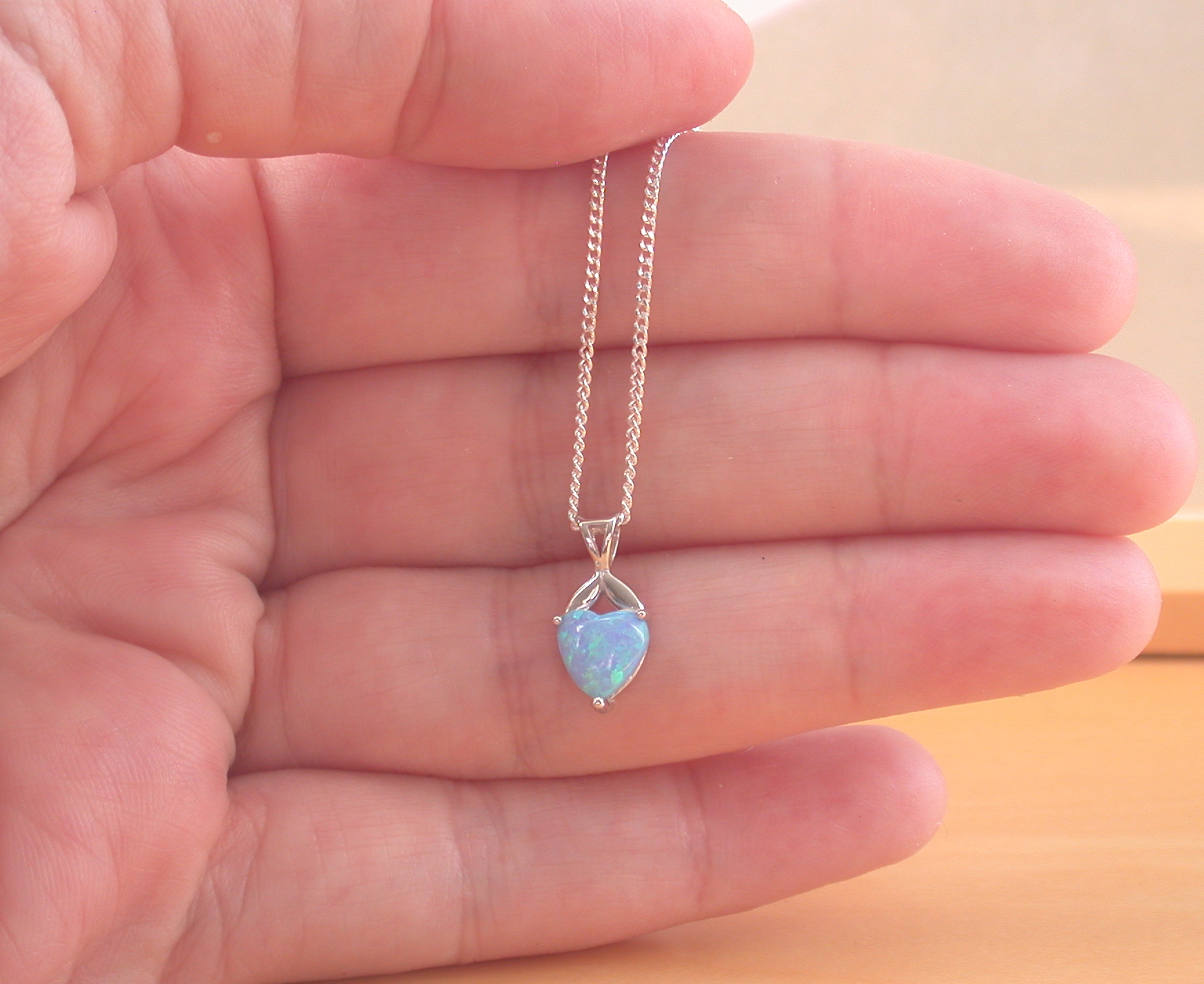 Sterling Silver Blue Opal Heart Pendant & chain/Blue Opal Heart Necklace UK/Blue Opal Jewellery/Blue Opal Jewelry/October Birthstone