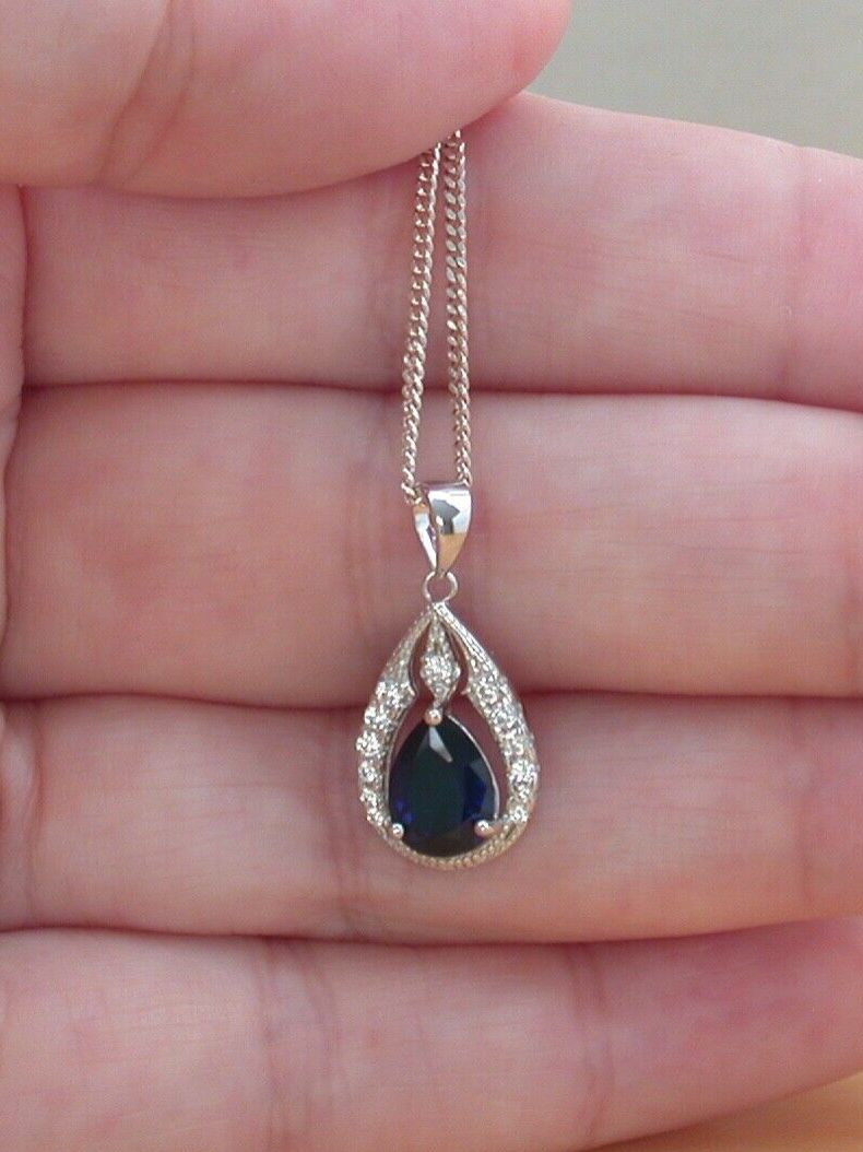 Sterling Silver Sapphire(Lab Created)Pendant &18" Chain/Sterling Silver Sapphire Necklace UK/Sapphire Jewellery/Sapphire Jewelry/September Birthstone
