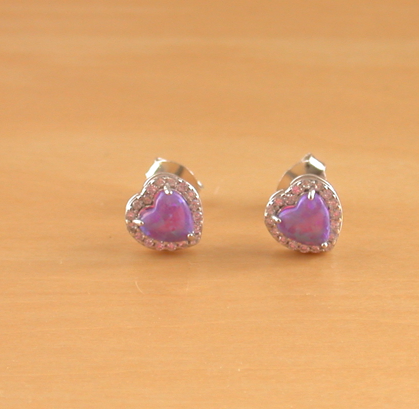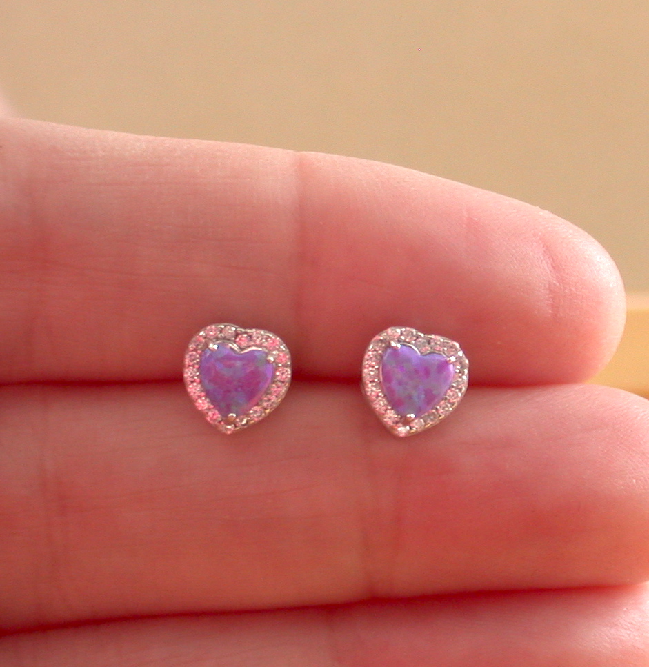 These are a really pretty pair of lavender heart, stud earrings with Cz crystals. They measure 7mm height x 8mm width and are stamped 925 on the back. The opal gemstone is produced by synthesizing the silica beads that form natural opal. Opal is the birthstone for October.