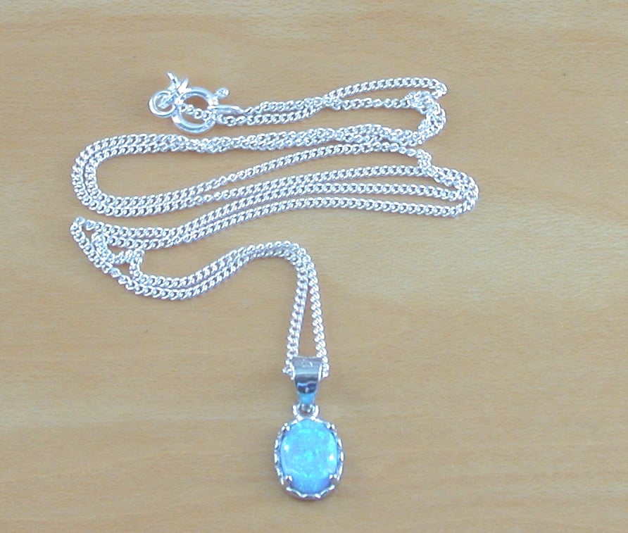 Sterling Silver Blue Opal Pendant & Chain/Blue Opal Necklace/Opal Necklace/Opal Jewellery/Opal Jewelry/Opal Necklace/UK