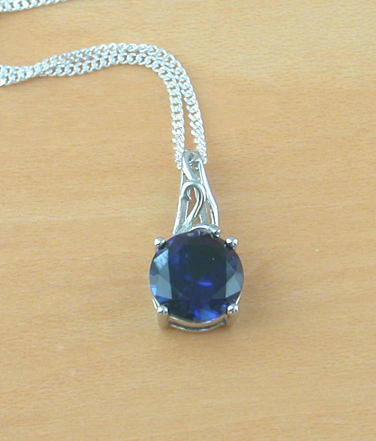 Sterling Silver Sapphire Solitaire Pendant & Chain/Sapphire Necklace/Blue Sapphire Necklace/Sapphire Jewellery/Sapphire Pendant/UK
