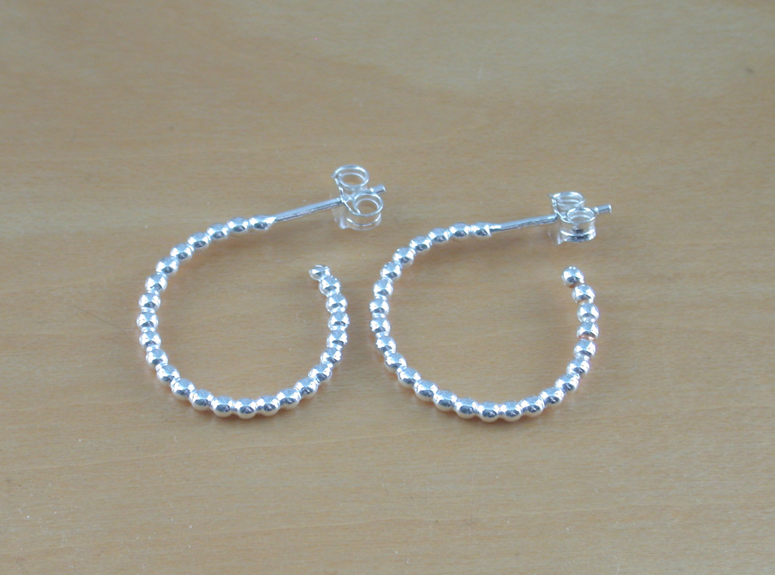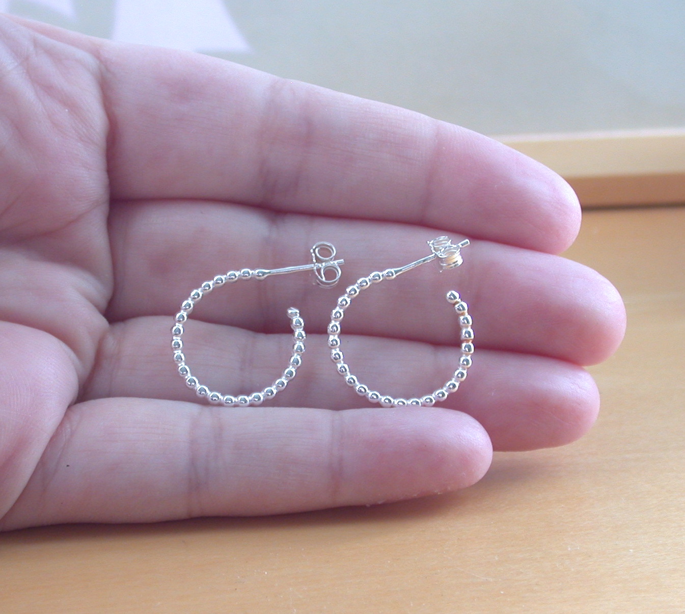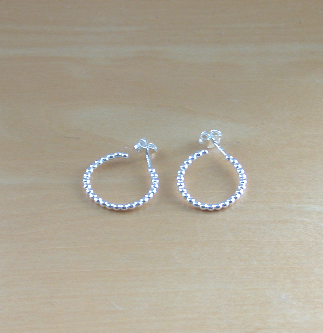 Sterling silver, beaded hoop stud earrings. Size 20.5mm. Stamped 925.
