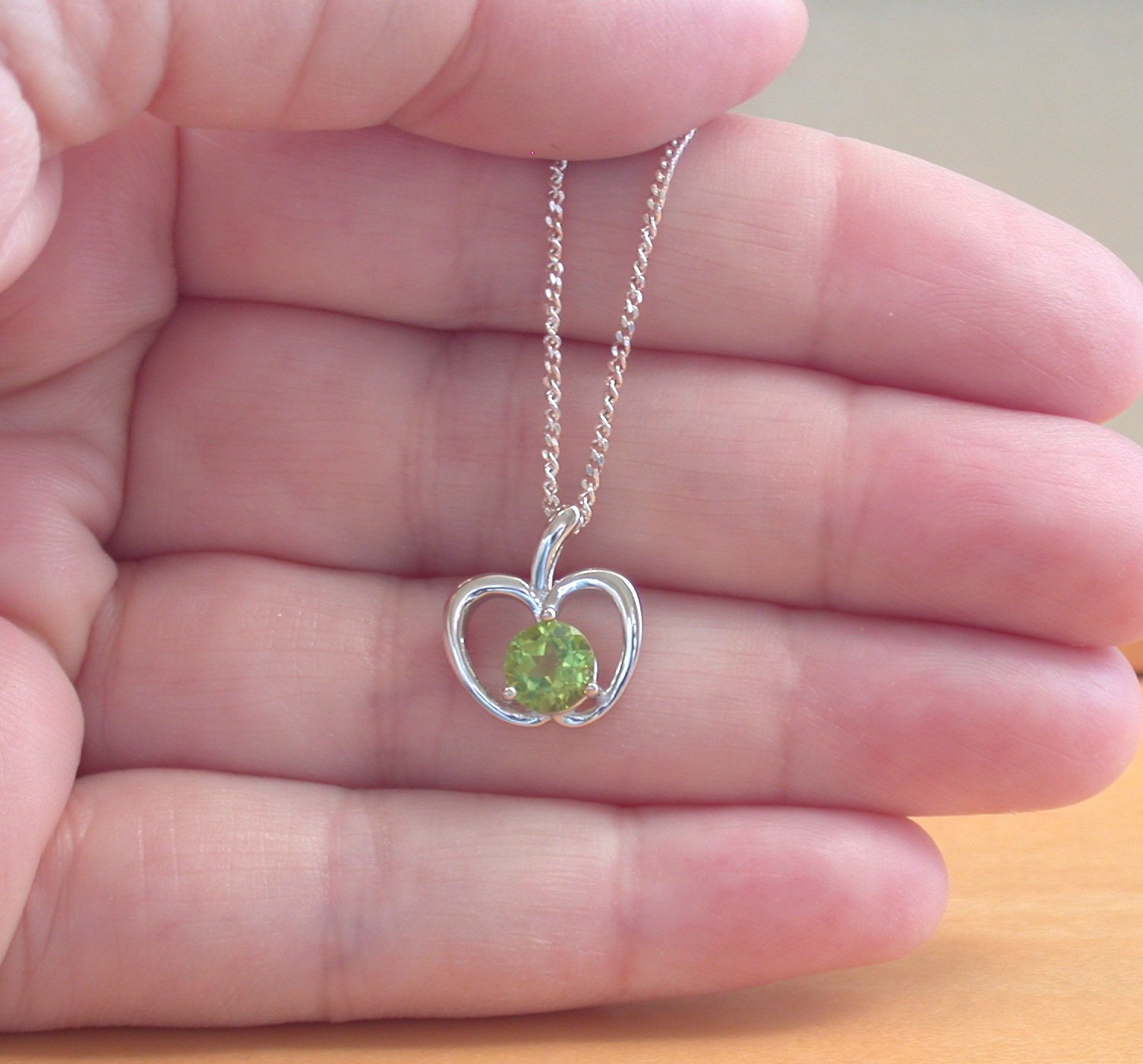 Sterling Silver Peridot Apple Pendant & Chain/Peridot Necklace/Peridot Jewellery/Peridot Jewelry/Gemstone Necklace/August Birthstone/UK