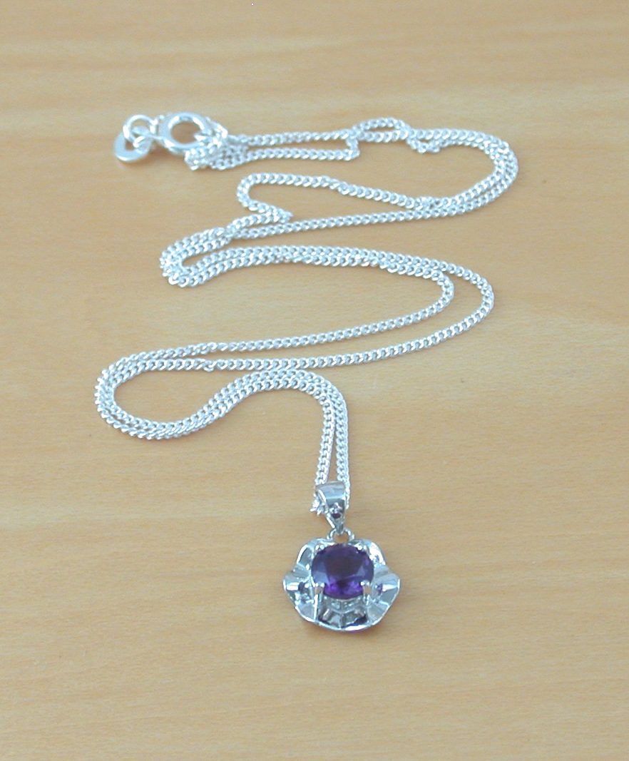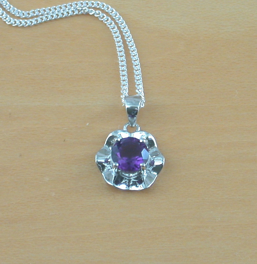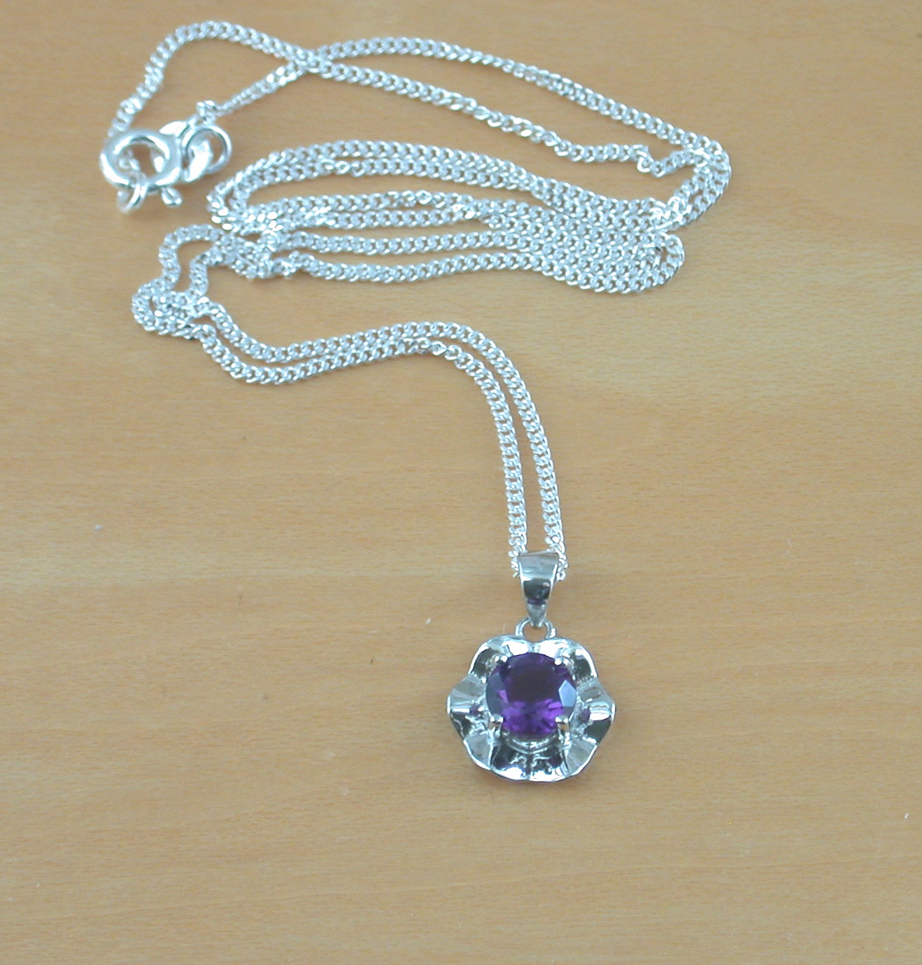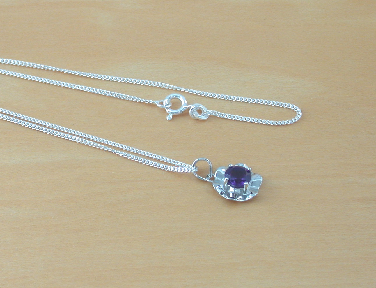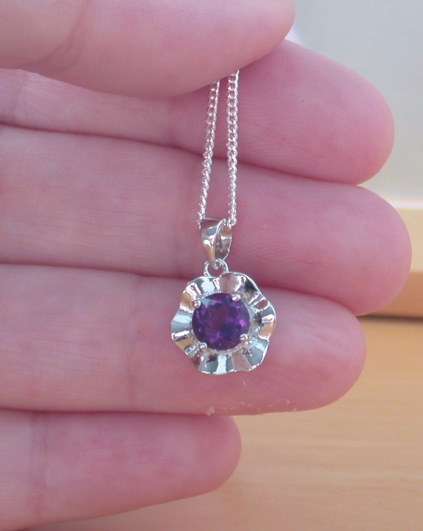Sterling Silver Amethyst Gemstone Flower Pendant & Chain/Amethyst Necklace/Amethyst Jewellery/AmethystJewelry/February Birthstone/UK