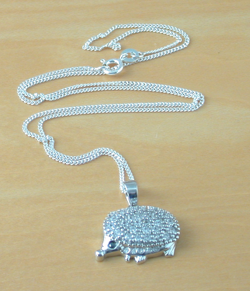 Sterling Silver Cz Hedgehog Pendant & Chain/Hedgehog Necklace/Hedgehog Jewellery/Hedgehog Jewelry/Cz Necklace/UK