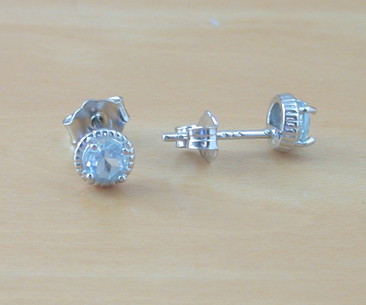 Sterling silver genuine blue topaz gemstone stud earrings. These earring measures 5mm. The blue topaz gemstone measures 3mm. Stamped 925. Topaz is the birthstone for November.