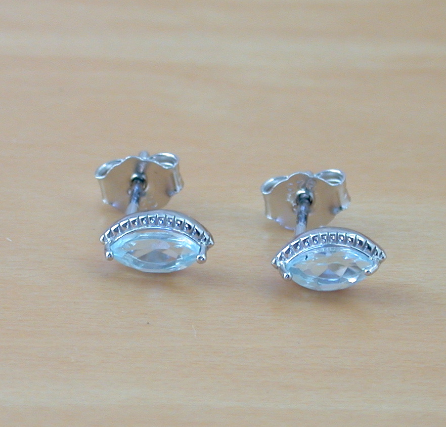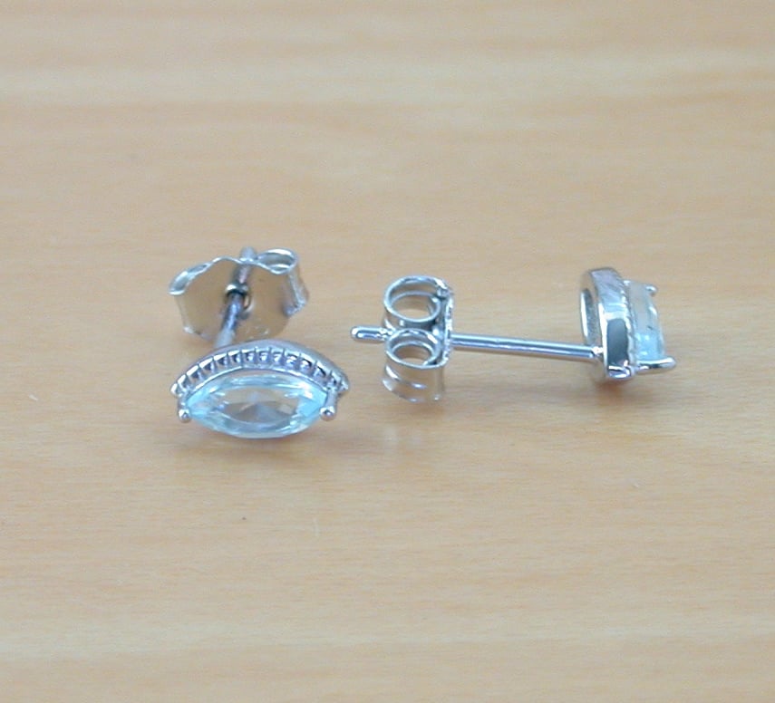 Sterling silver genuine blue topaz gemstone marquise stud earrings. These earring measures 8mm height x 3mm width. Stamped 925. Topaz is the birthstone for November.