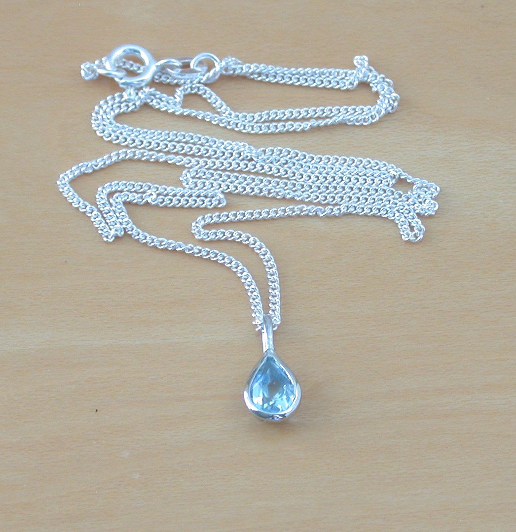 Sterling Silver Blue Topaz Teardrop Pendant & Chain/Blue Topaz Necklace/Topaz Jewellery/Topaz Jewelry/November birthstone/Gemstone Necklace/UK