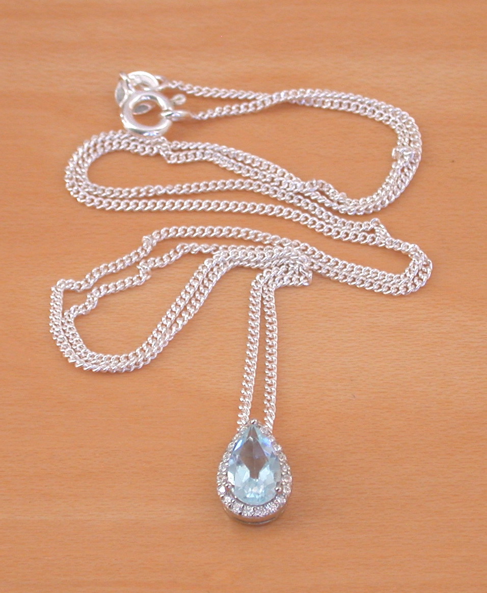 Sterling Silver Blue Topaz & Cz Pendant & Chain/Blue Topaz Necklace/Topaz Jewellery/Topaz Jewelry/November Birthstone/Gemstone Necklace/UK
