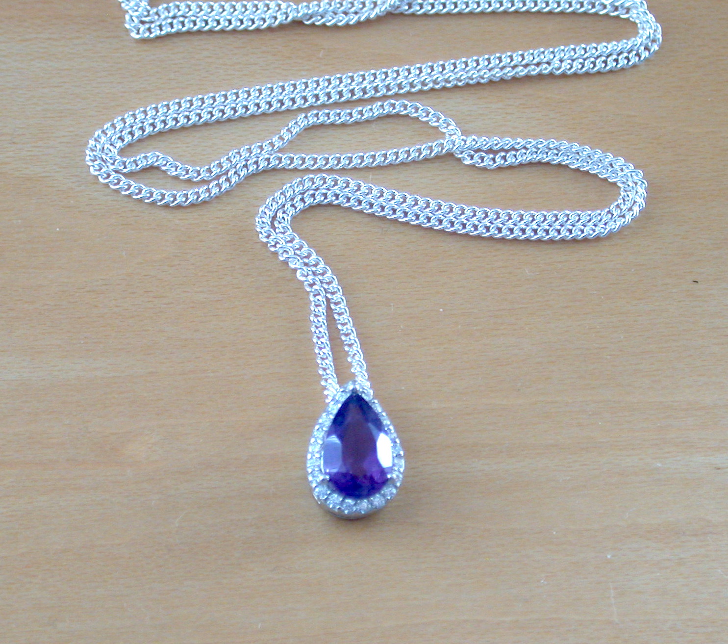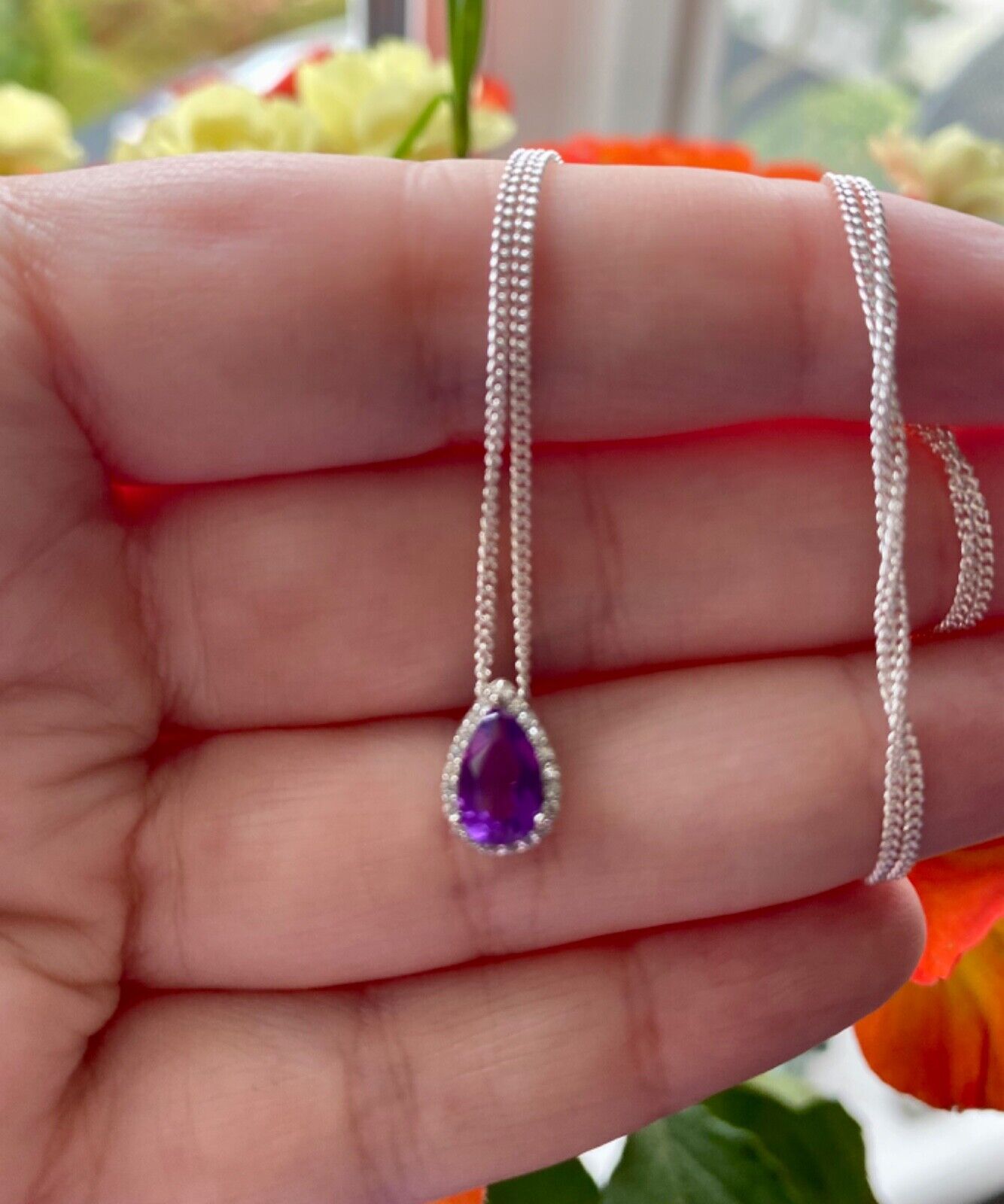Sterling Silver Amethyst & Cz Teardrop Pendant & Chain/Amethyst Necklace/Amethyst Jewellery/Amethyst Jewelry/February Birthstone/UK