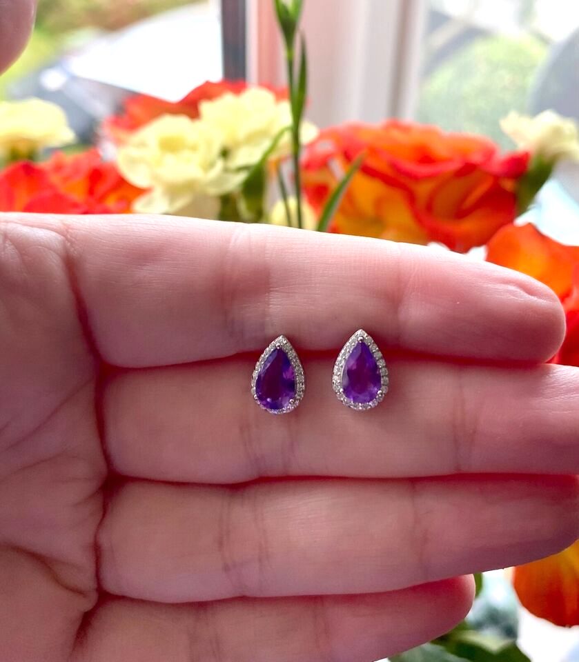 Sterling Silver Amethyst & Cz Teardrop Stud Earrings/Amethyst Earrings/Amethyst Studs/Amethyst Jewellery/Amethyst Jewelry/February Birthstone/UK