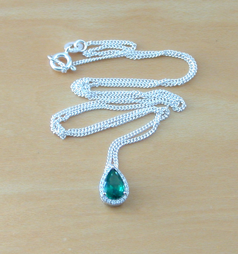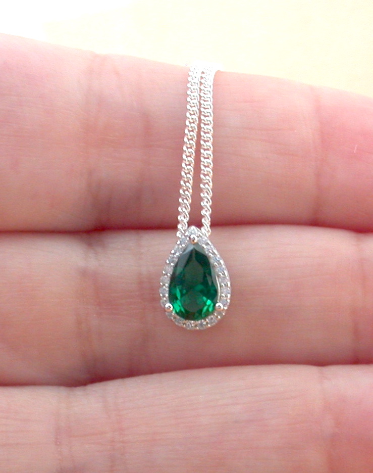 Sterling Silver Emerald & Cz Teardrop Pendant & Chain/Emerald Necklace/Emerald Jewellery/Emerald Jewelry/Gemstone Necklace/May Birthstone/UK