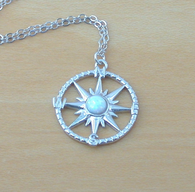 Sterling Silver Opal Compass Necklace/White Opal Necklace/Opal Jewellery/Opal Jewelry/October Birthstone/Compass Pendant/Gemstone Necklace/UK