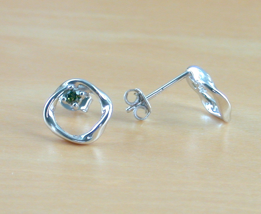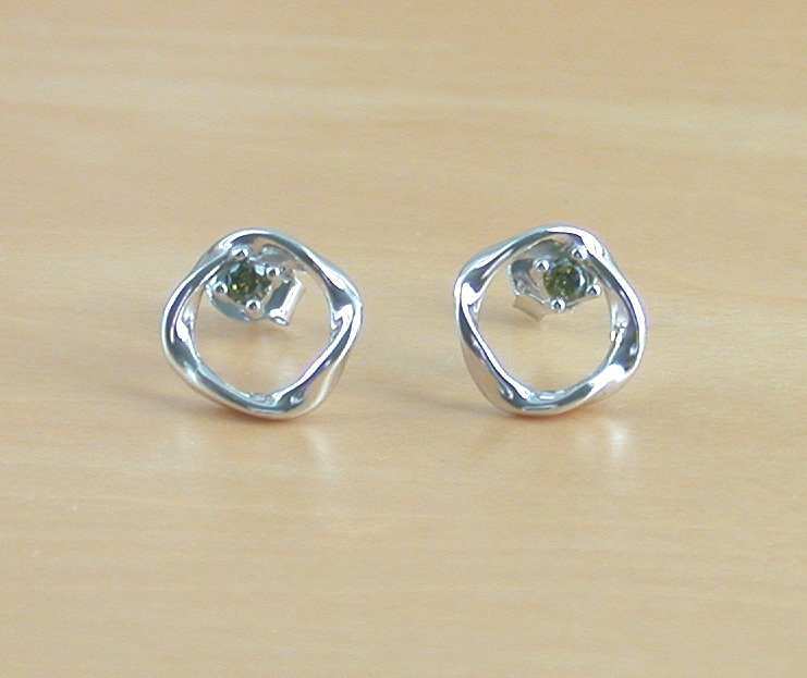 Sterling silver, circle stud earrings set with peridot gemstones. These earring measures 10mm height x 10mm width. Stamped 925. Peridot is the birthstone for August.