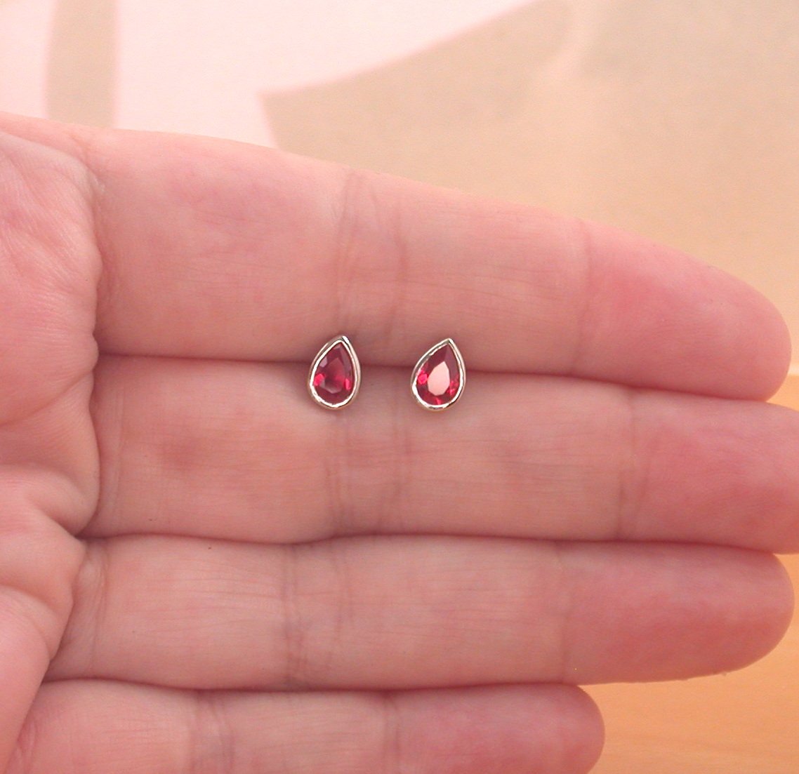 Sterling Silver Ruby Teardrop Stud Earrings/Ruby Earrings/Ruby Jewellery/Ruby Jewelry/Gemstone Earrings/July Birthstone/UK