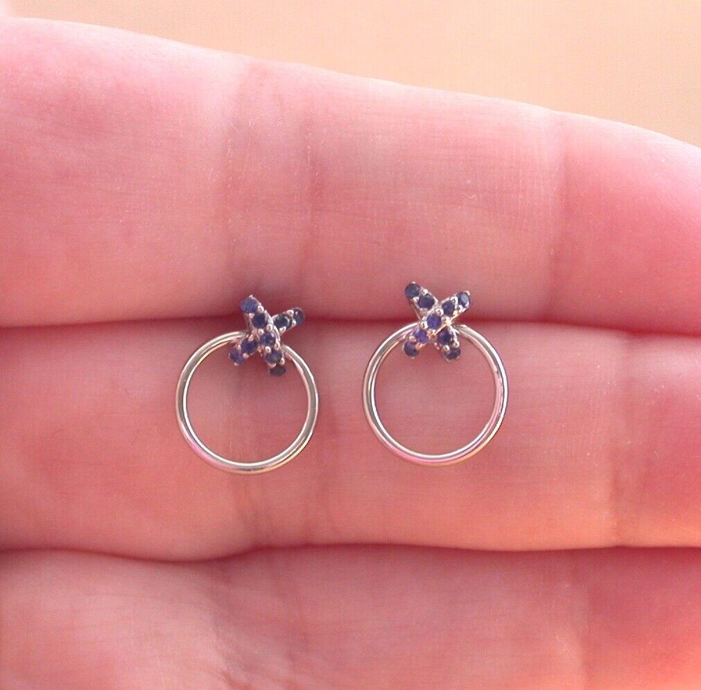 Sterling Silver Sapphire Cross Stud Earrings/Sapphire Jewellery/Sapphire Jewelry/Hoop Earrings/Hoop Jewellery/September Birthstone/UK