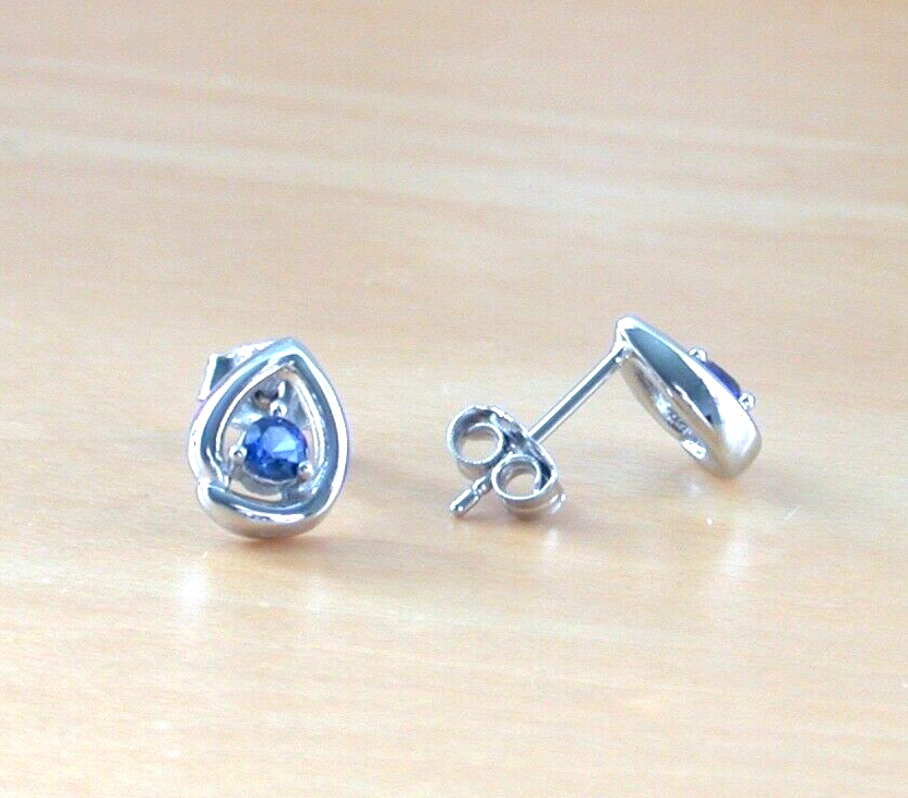Sterling silver sapphire (lab created) gemstone teardrop earrings. These earrings measure 9mm height x 8mm width. The gemstones measure 2mm. Stamped 925. Sapphire is the birthstone for September.