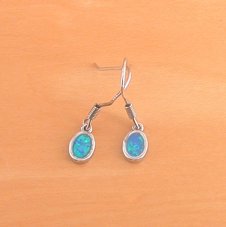 Sterling silver, blue opal (lab created)gemstone with Cz, hook earrings. These earrings measure 13mm height x 6mm width. Blue opal gemstones measure 5mm. Stamped 925. Opal is the birthstone for October.