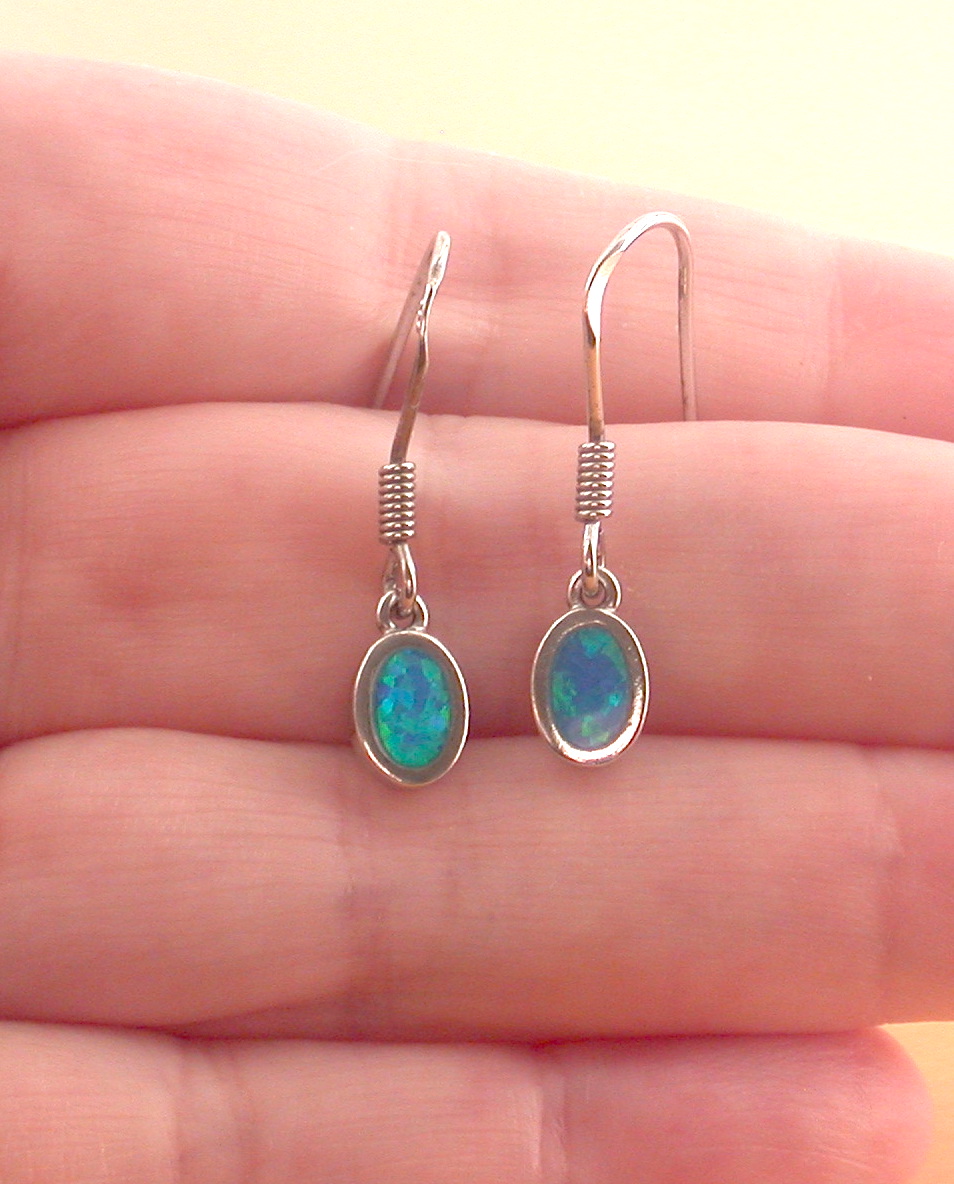 Sterling Silver Blue Opal Drop Earrings/Opal Earrings/Dangly Earrings/Opal Jewellery/Opal Jewelry/Earrings/October Birthstone/UK