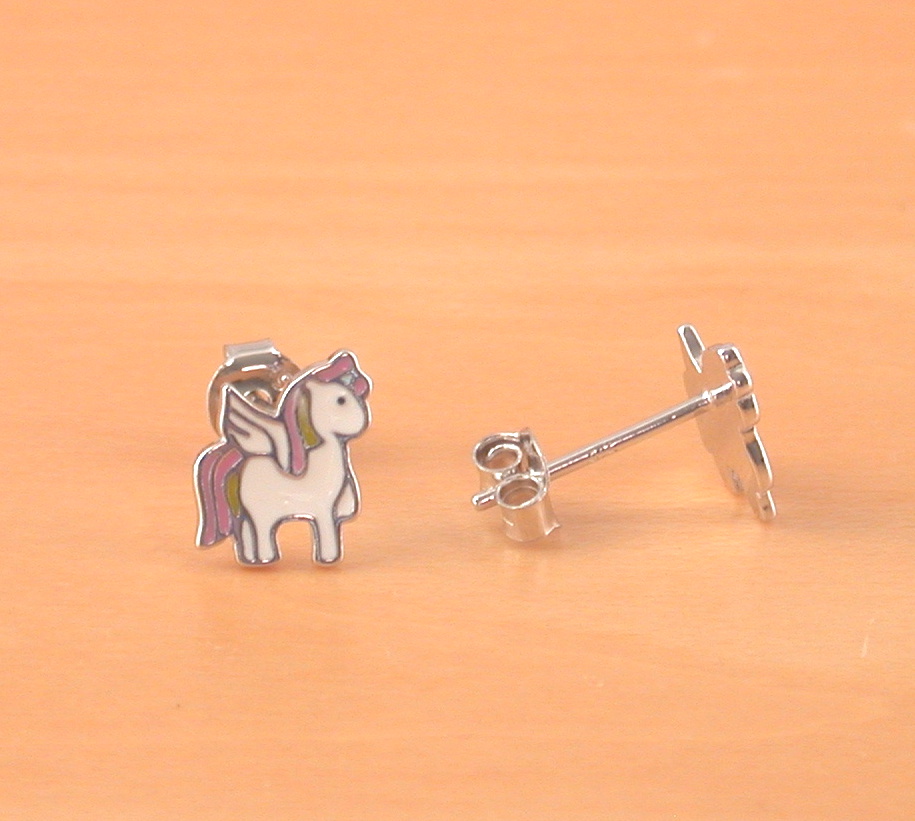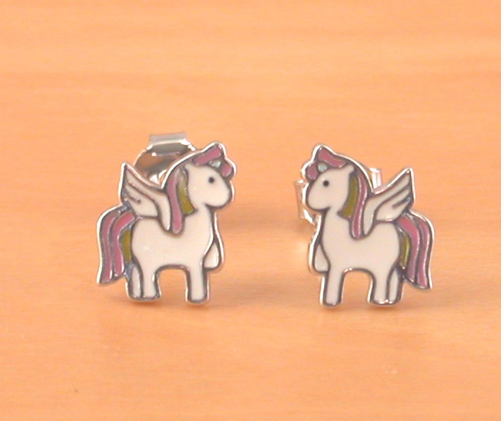 Sterling Silver Pegasus Winged Horse Earrings/Enamel Horse Earrings/Childrens Earrings/Fantasy Earrings/Horse Earrings/Flying Horse/UK