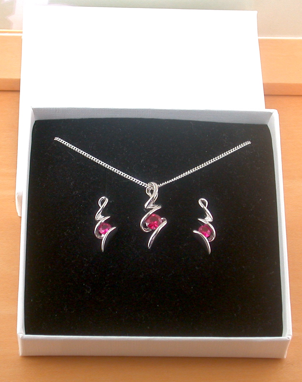 This pendant, chain and earrings will come complete with white presentation gift box and bag. This will include a ruby gemstone description card below: