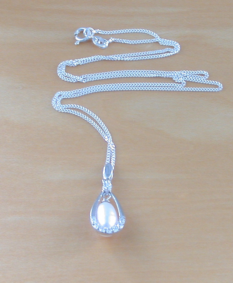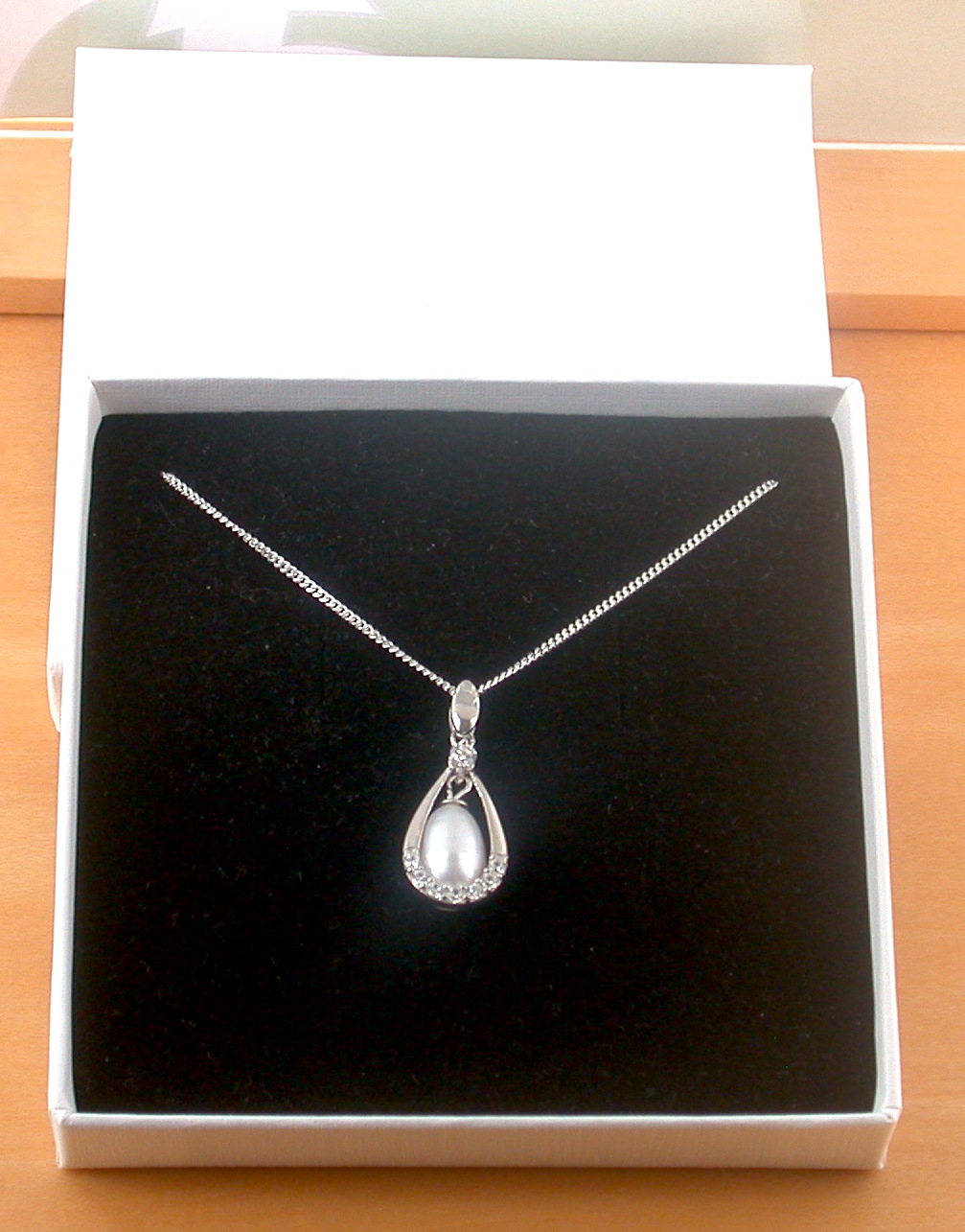 This pearl pendant and 18 inch sterling silver curb chain will come complete with presentation gift box and bag and will also include freshwater pearl gemstone description card below: