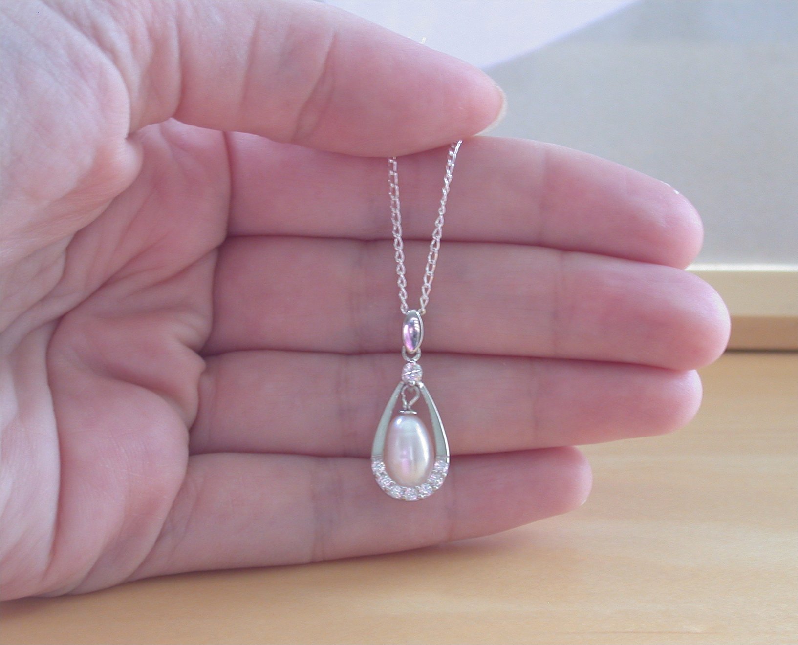 This is a really lovely white freshwater pearl oval design pendant with Cz crystal detail. This pendant measures 20mm height x 11mm width. The bale measures 6mm length.The centre pearl measures 10mm. Stamped 925. Pearl is the birthstone for June.