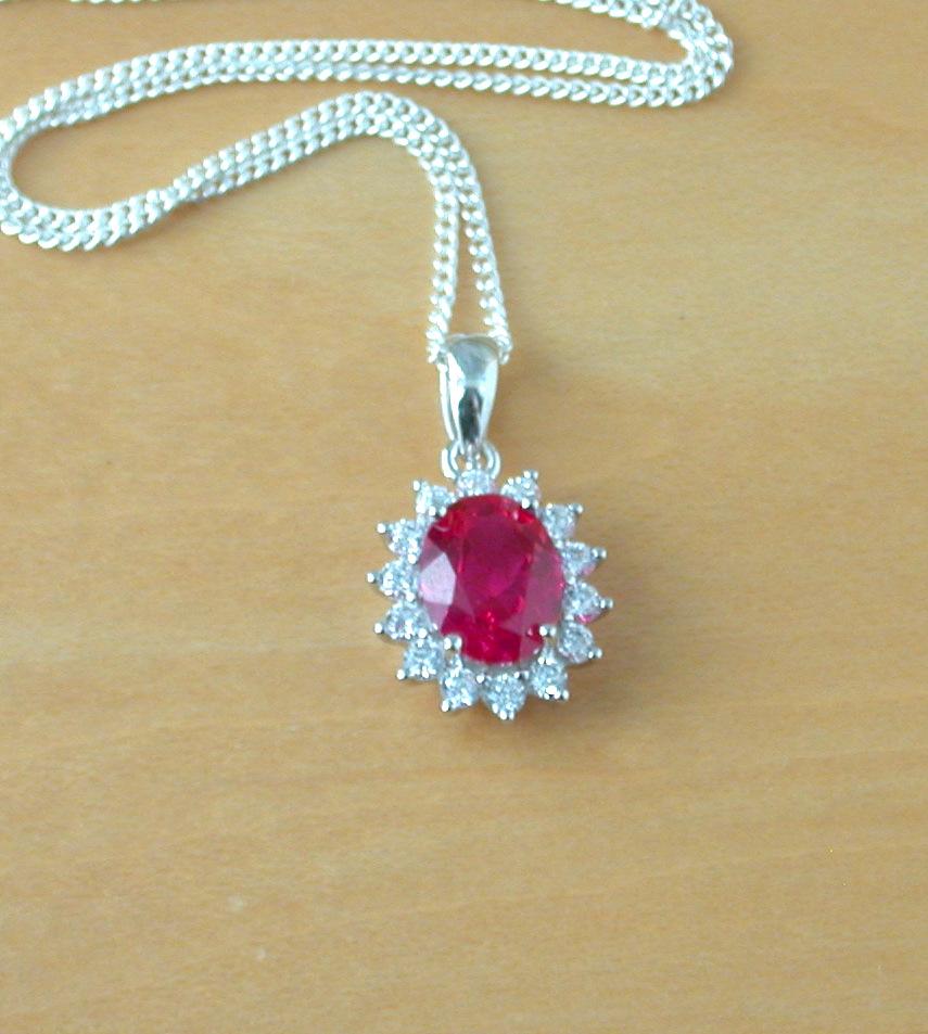 BOXED NECKLACE/Sterling Silver Ruby(Lab Created) Necklace/Ruby Pendant/Ruby Necklace/July Birthstone/Ruby Jewellery