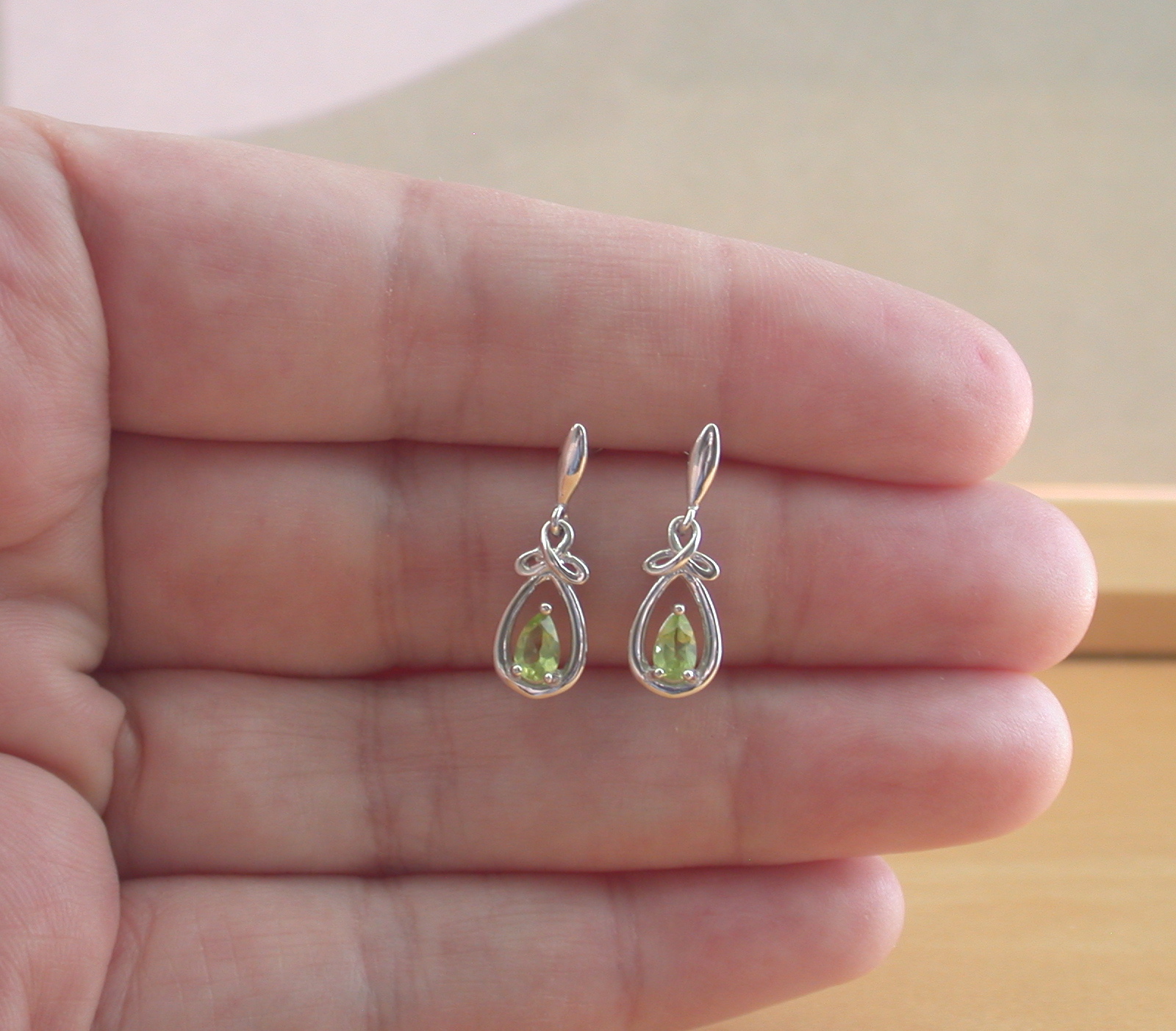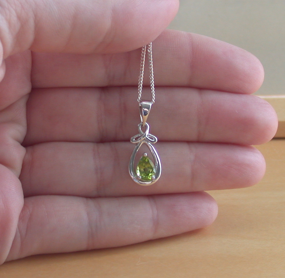 BOXED GIFT SET/Sterling Silver Peridot Celtic Knot Pendant & Chain/Peridot Necklace/Peridot Jewellery/Peridot Jewelry/Peridot Earrings/August