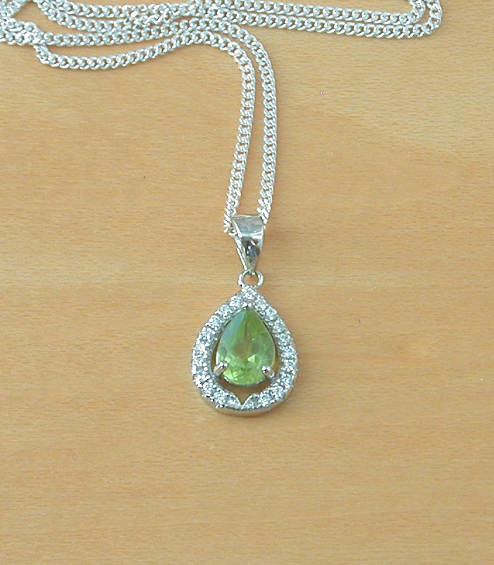 BOXED GIFT SET/Sterling Silver Peridot & Cz Pendant & Chain/Peridot Necklace/Peridot Jewellery/Peridot Jewelry/Peridot Earrings/August