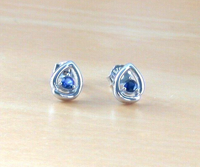 Sterling silver sapphire (lab created) gemstone teardrop pendant. The pendant measures 10mm height x 7mm width.This pendant comes complete with an 18 inch sterling silver chain. Stamped 925. The sterling silver sapphire earrings measure 9mm height x 8mm width. The gemstones measure 2mm. Sapphire is the birthstone for September.