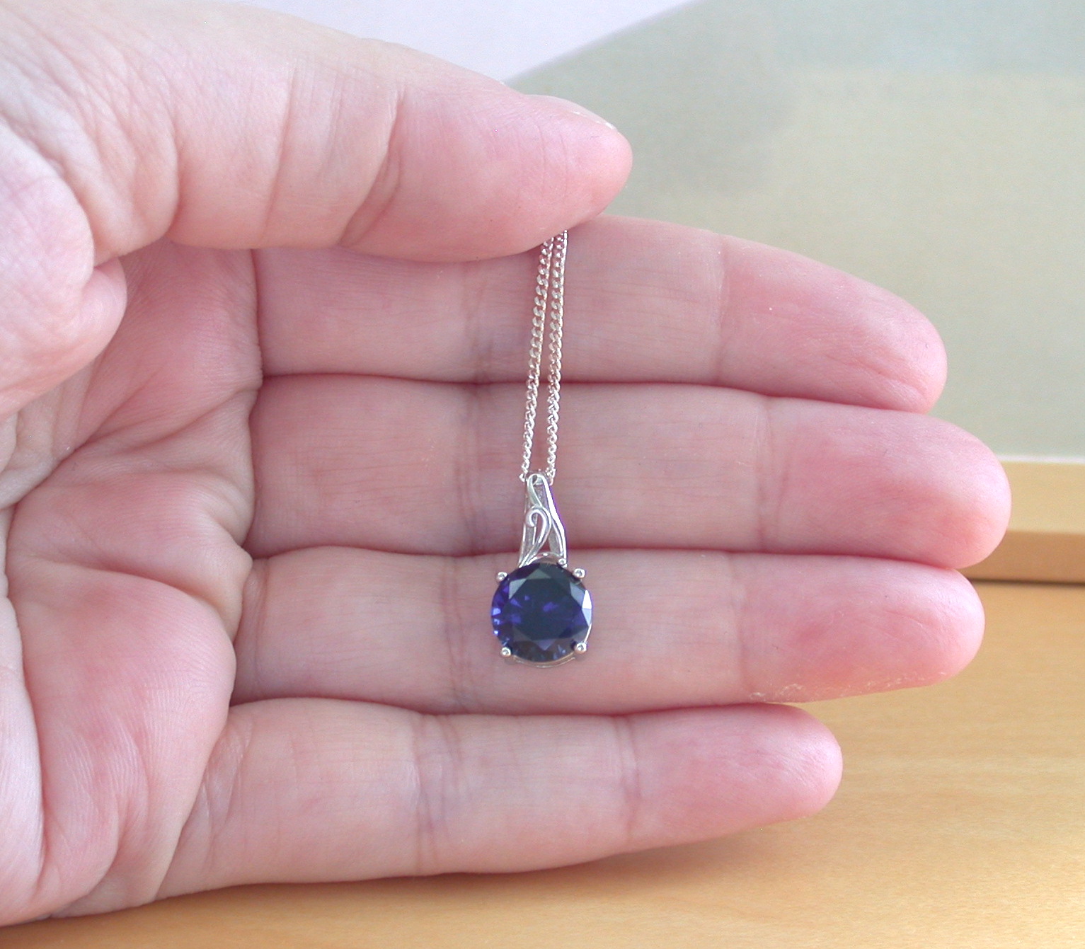 BOXED GIFT /925 Sapphire (Lab Created) Solitaire Pendant & Chain/Sapphire Jewelry/Silver Sapphire Necklace/Sapphire Pendant/Sapphire Gift/UK
