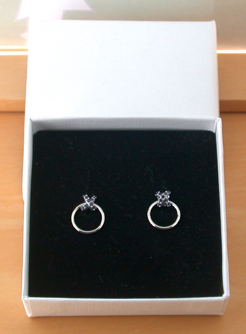 These earrings will be presented in a white gift box and an organza gift bag. This will include a sapphire gemstone description card below: