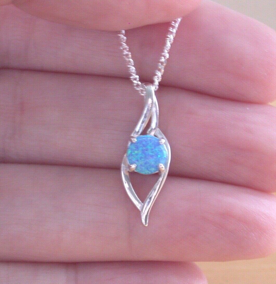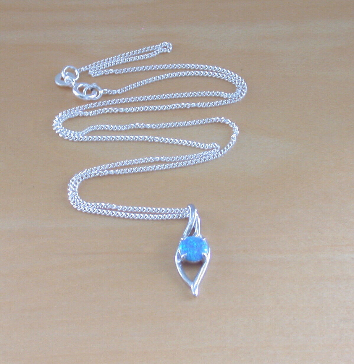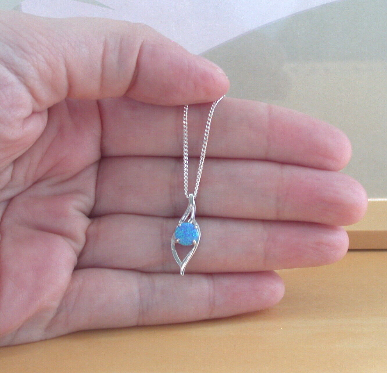 BOXED GIFT SET/Sterling Silver Blue Opal Pendant & 18" Silver Chain/Sterling Silver Blue Opal Necklace/Blue Opal Jewellery/Blue Opal Jewelry/UK