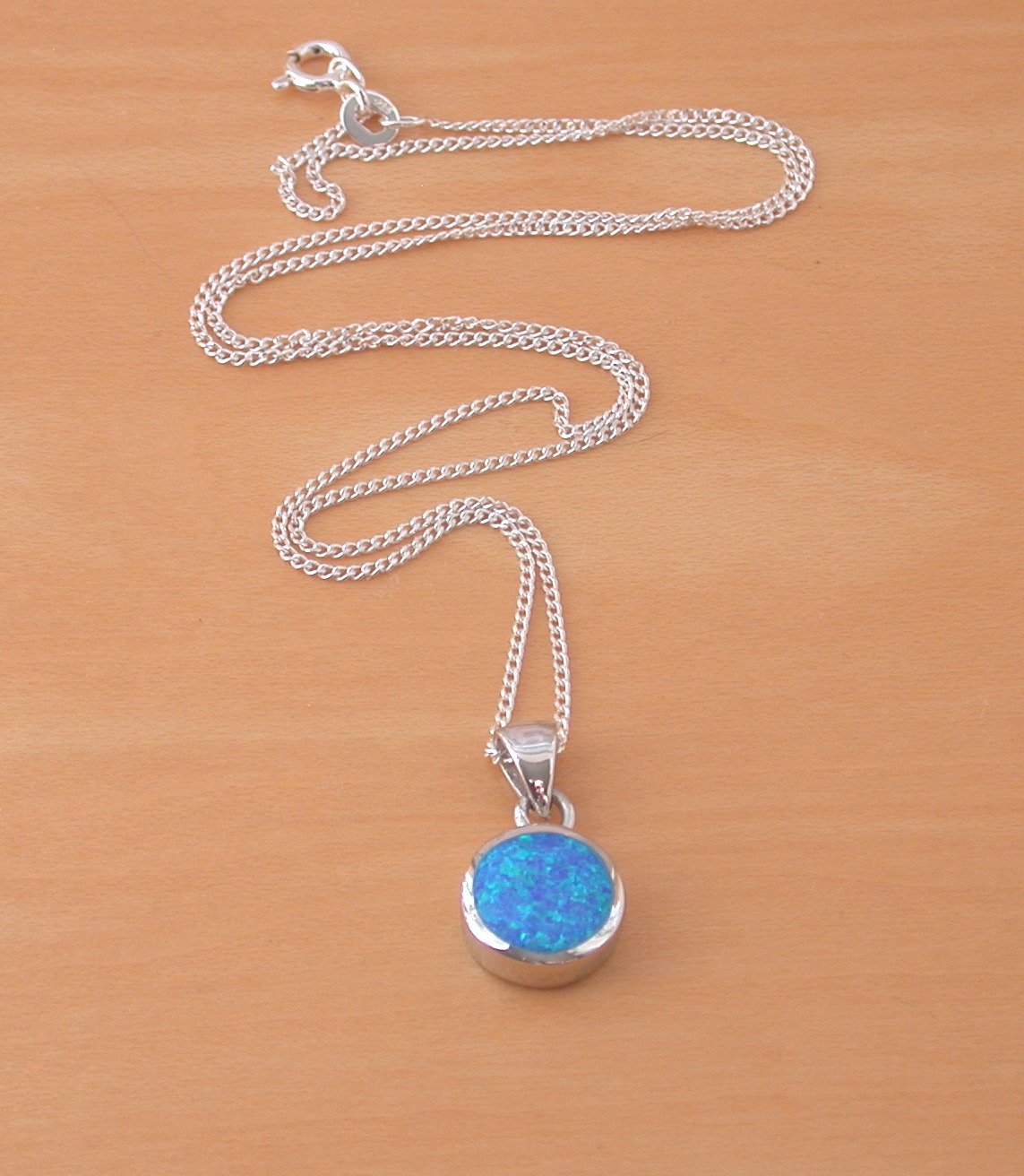 BOXED GIFT SET/Sterling Silver Blue Opal Round Pendant & 18' Chain/Blue Opal Necklace/Blue Opal Jewellery/Blue Opal Jewelry/October Birthstone/UK