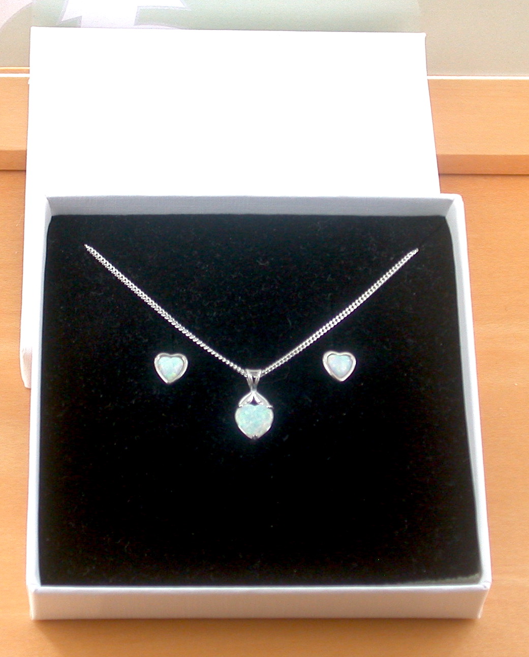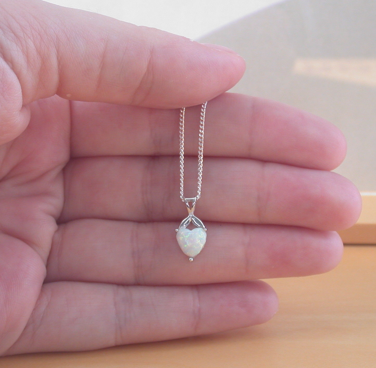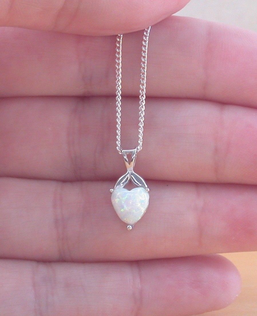 BOXED GIFT SET/Sterling Silver White Opal Heart Pendant & Chain/Opal Heart Necklace UK/Opal Jewellery/Opal Jewelry/October Birthstone/UK