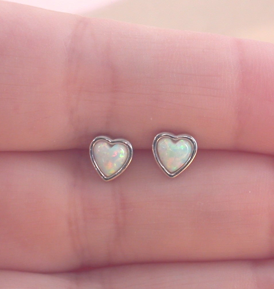 Sterling silver white opal heart gemstone pendant with a sterling silver curb chain. The pendant measures 15mm height x 7mm width. The heart gemstone measures 7mm height x 7mm width. This pendant will come complete with an 18 inch sterling silver curb chain.The sterling silver white opal heart stud earrings measure 5mm x 5mm. Stamped 925. Opal is the birthstone for October.