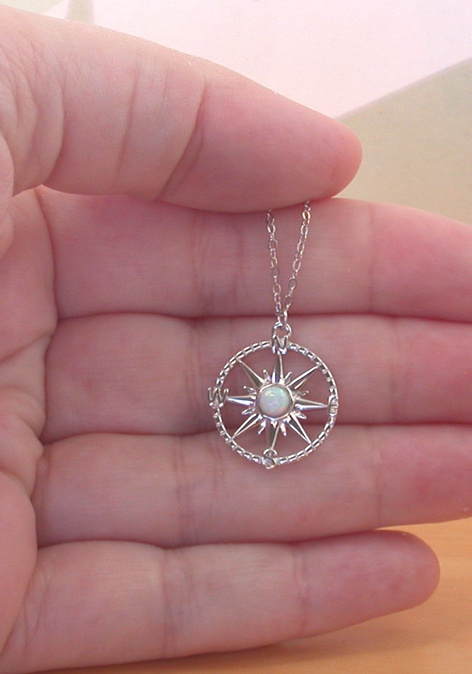 BOXED GIFT SET/Sterling Silver Opal Compass Necklace/White Opal Necklace/Opal Jewellery/Opal Jewelry/October Birthstone/Compass Pendant/UK