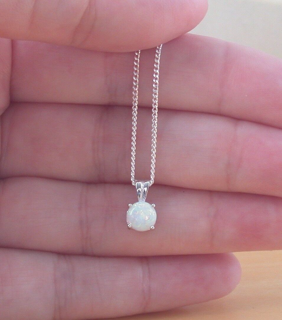BOXED GIFT SET/Sterling Silver White Opal Solitaire Pendant & Chain/Silver Opal Necklace UK/Opal Jewellery/Opal Jewelry