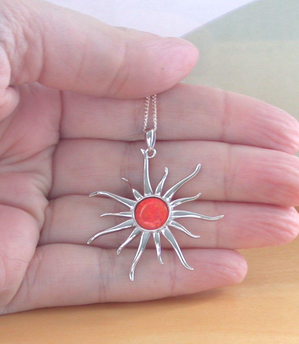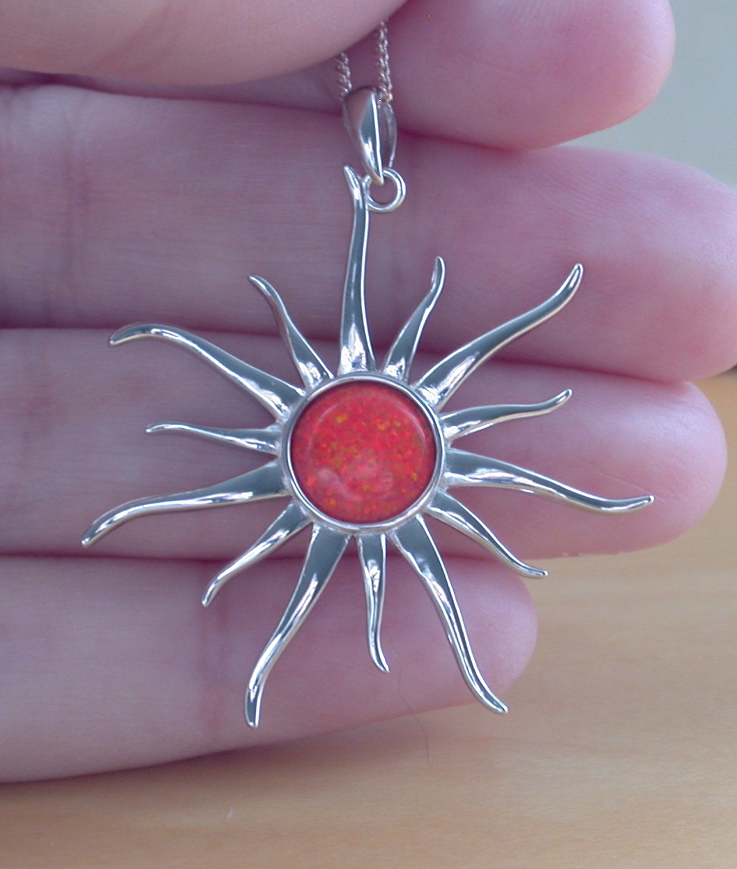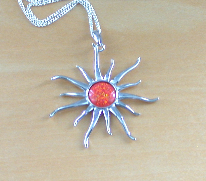 BOXED GIFT SET/Sterling Silver Fire Opal Sun Pendant & Chain/Opal Necklace/Opal Jewellery/Opal Jewelry/Sun Necklace/Gemstone Necklace/UK
